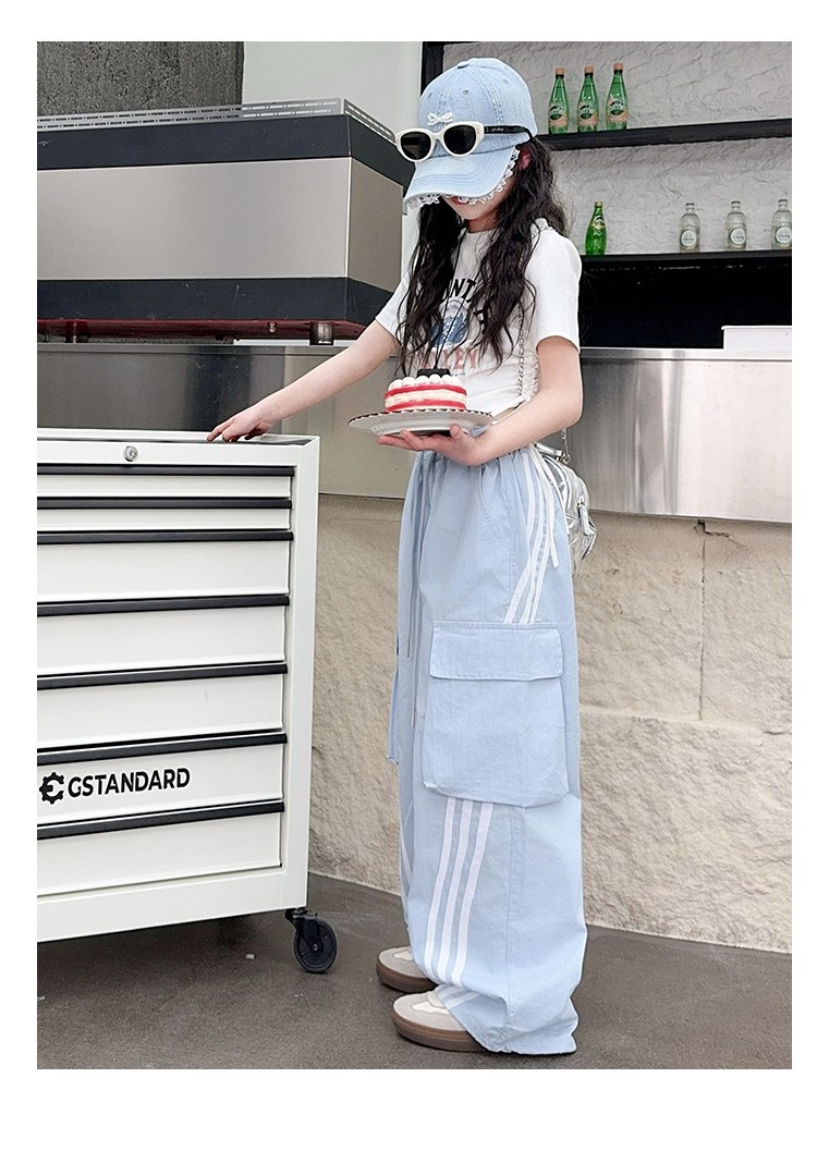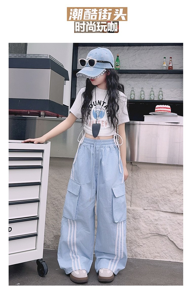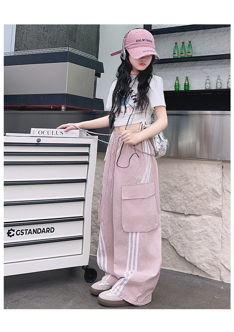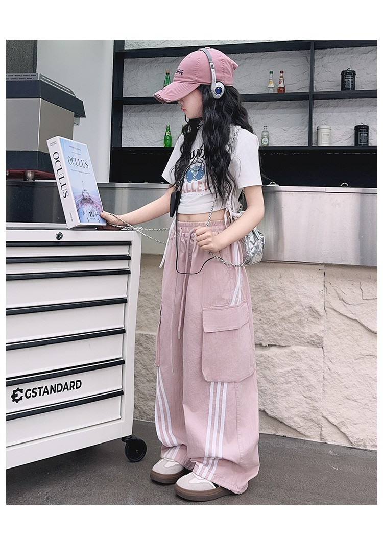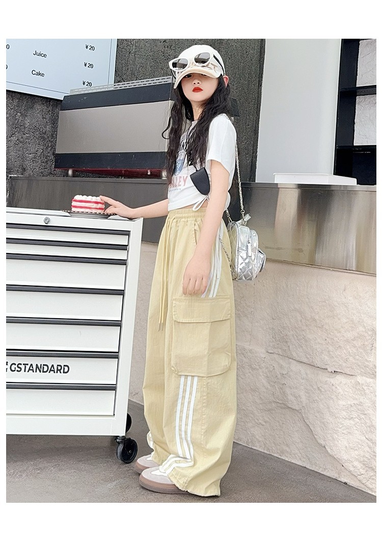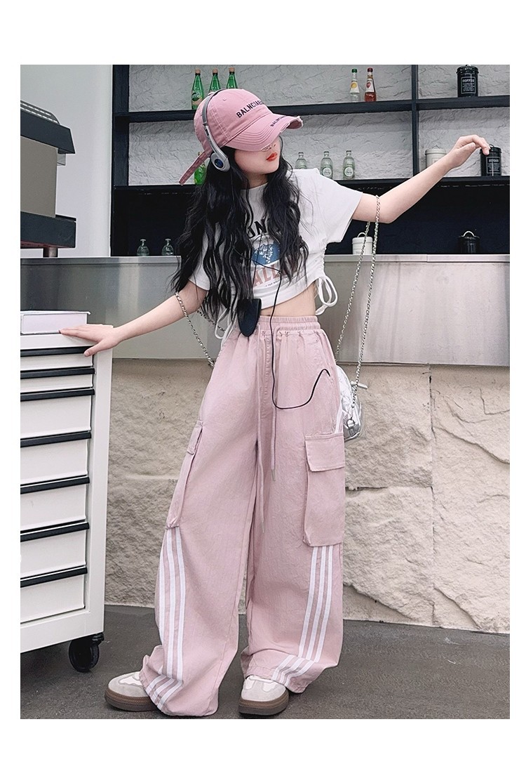 女の子作業服極薄夏ズボン2025新作子供カジュアルパンツ大きい子供ワイドレッグパンツ中学生速乾パンツ