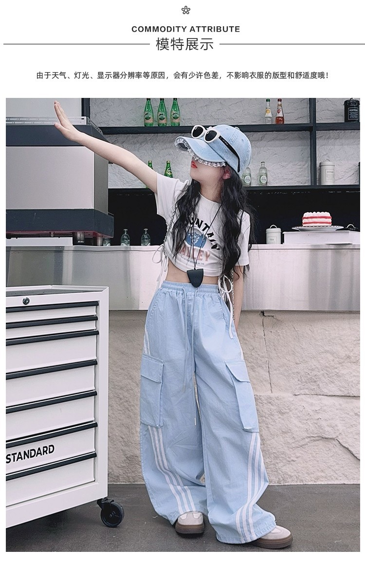 女の子春夏薄手アメリカンオーバーオール子供ジャズダンス練習着パンツ大きい子供夏速乾ワイドレッグパンツ