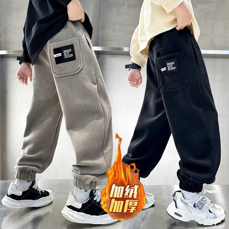 中大童秋冬款童装男童加绒裤子户外跑步冬季加厚保暖休闲束脚裤潮