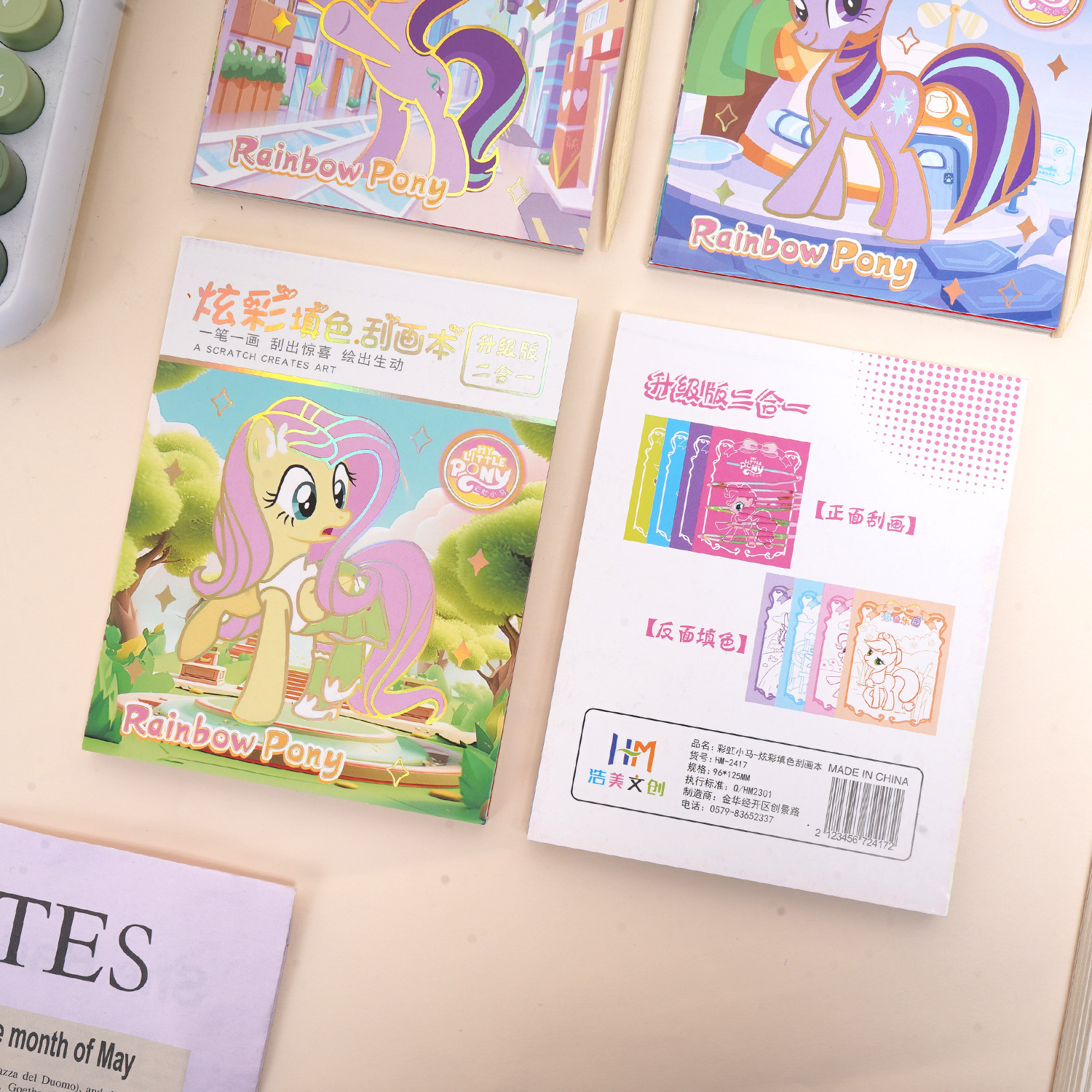 ポニーカラフル子供スクラッチブック落書きスクラッチペーパー趣味赤ちゃん女の子美術創意手作りdiy宝莉