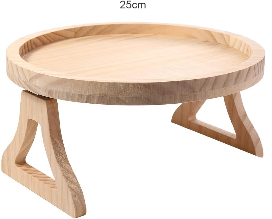 木製ソファ手すりトレイ円形折りたたみサイドテーブル朝皿カジュアル原木色ソファ手すり皿