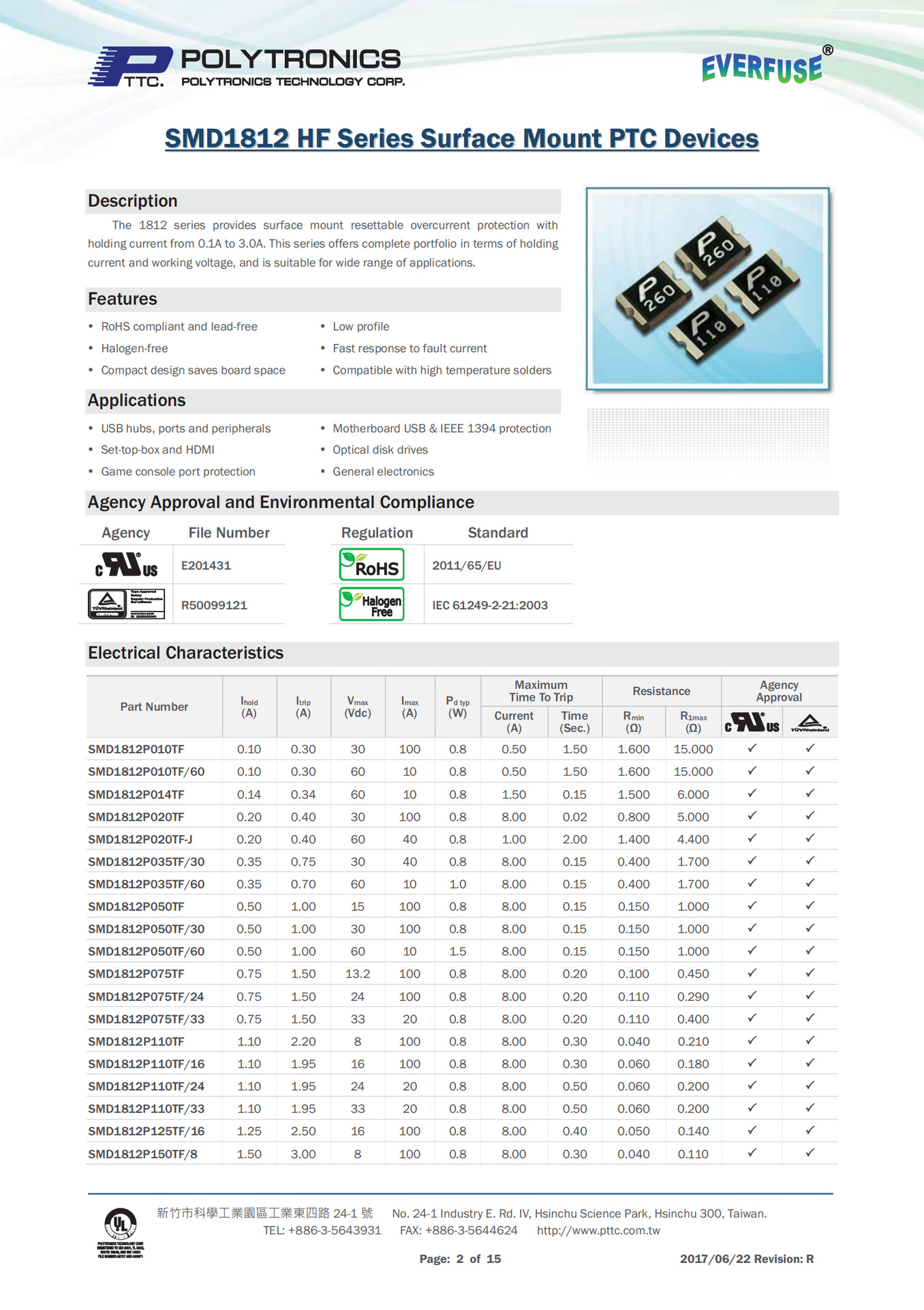 SMD1812P150TF/12 JUDING パッチヒューズ 1812 PTC サーミスタ 1.5A 12V