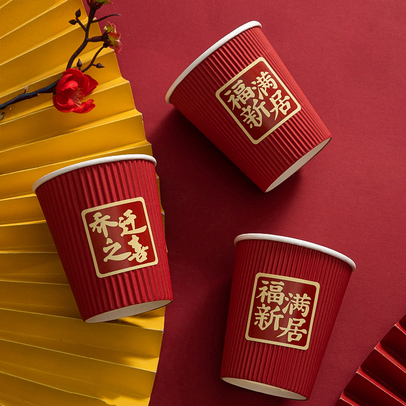 乔迁之喜一次性纸杯子迁新居搬家用品进宅加厚加硬喜事家宴酒席杯
