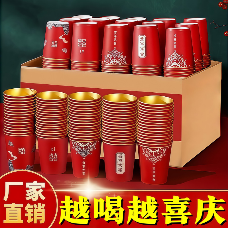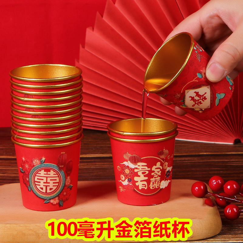 100ミリリットル紙コップ結婚使い捨て喜コップ厚い結婚祝い結婚式敬茶喜字赤い披露宴紙コップ