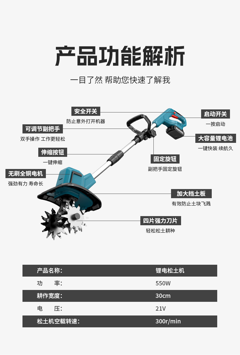 新款锂电池手持式无线便携高效松土机小型农用家用翻地挖土旋耕机