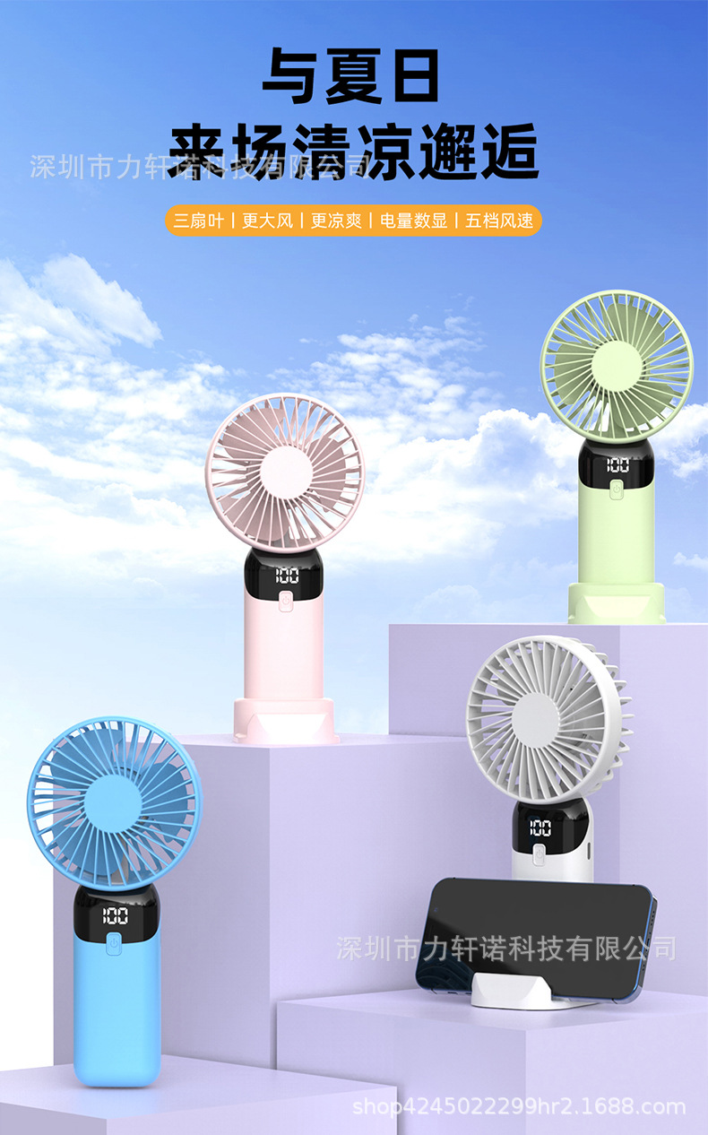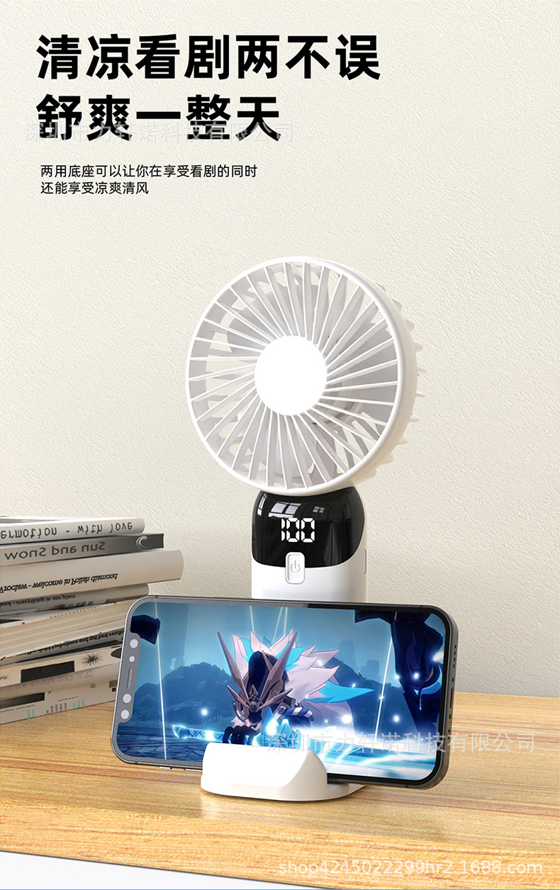 新しい USB 充電デジタルディスプレイミニハンドヘルド小型ファンポータブルデスクトップ携帯電話ホルダーファンクロスボーダー