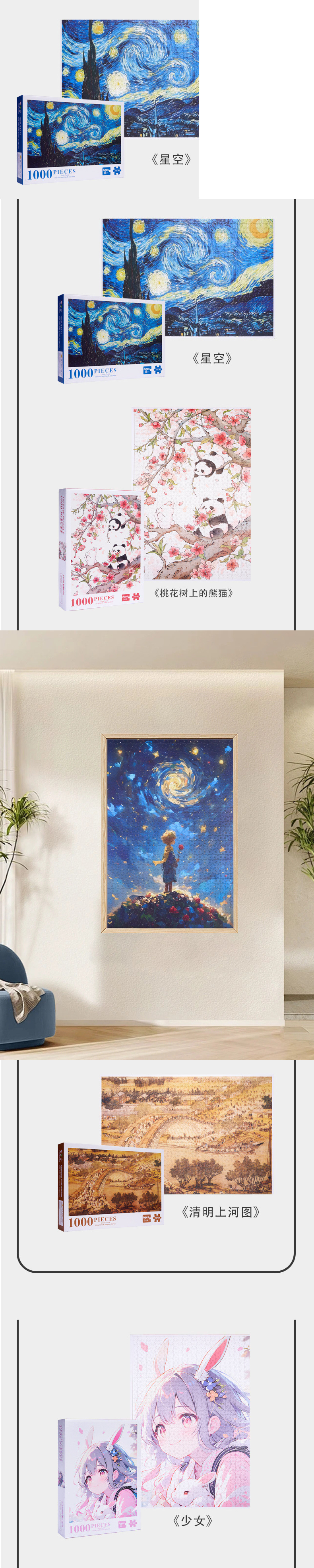 1000片拼图一千块儿童益智男女孩动漫玩具成人减压高难度梵高星空