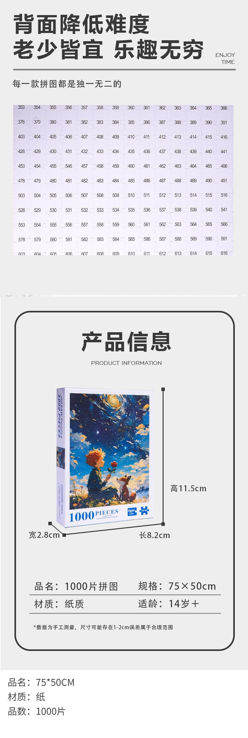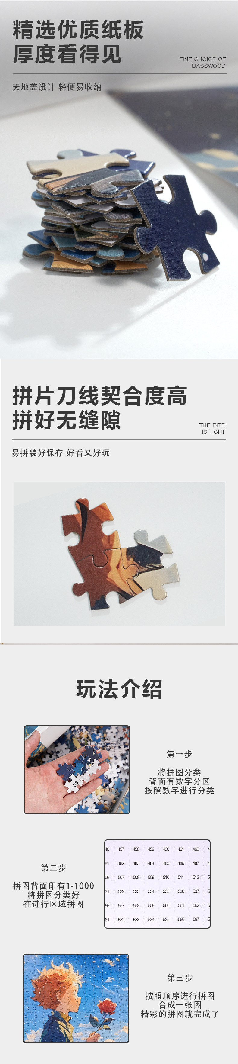 1100片2.2厚度丝绒拼图多款任选 儿童益智卡通拼图风景拼图