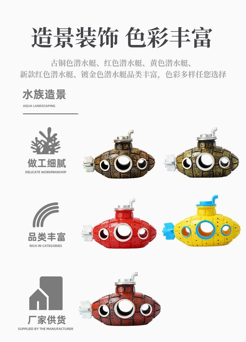 水槽造景 海底沈没船装飾 潜水艦置物 潜水艦 飛行機 車両残骸 隠れ家 洞窟 跨境工場