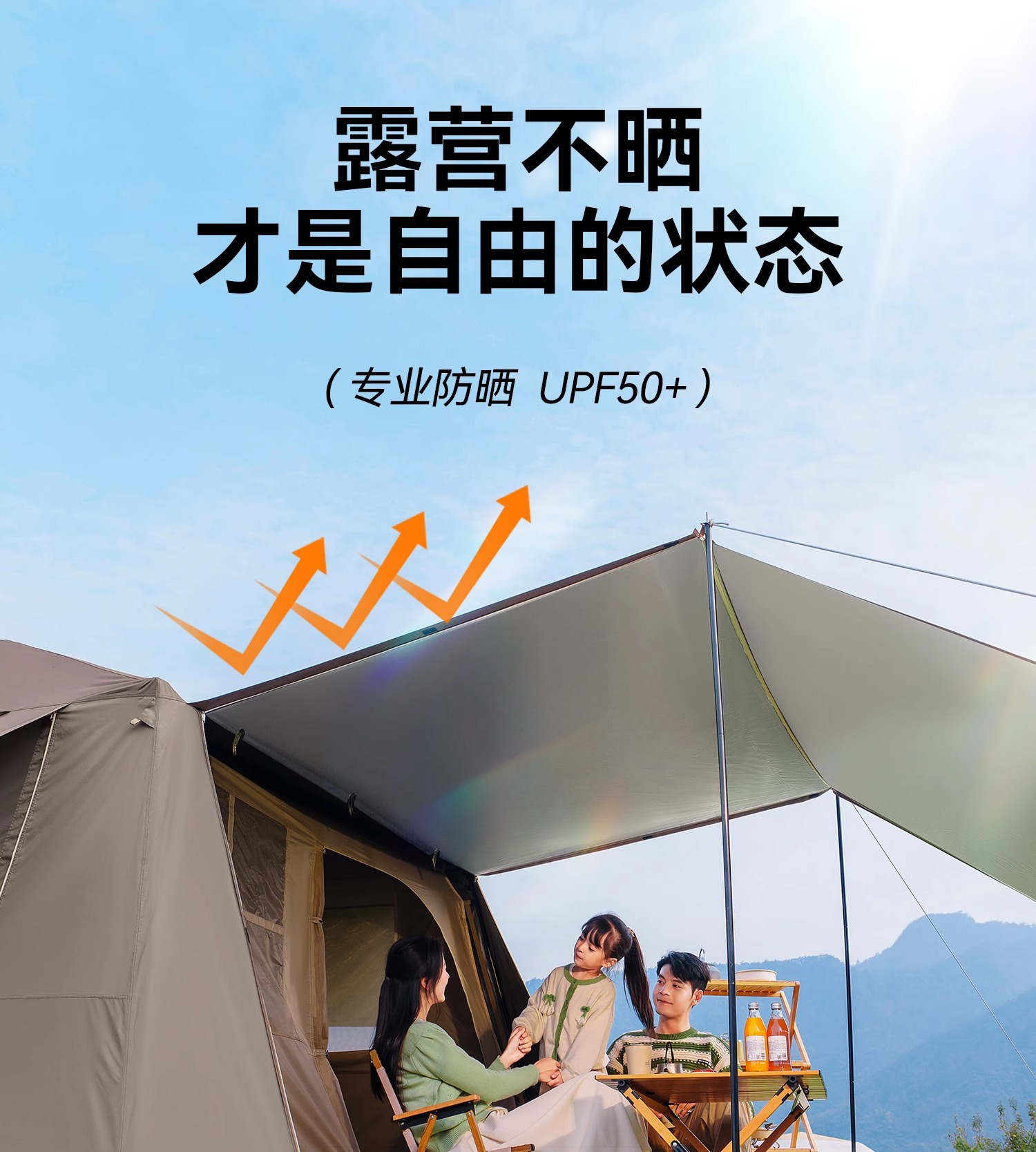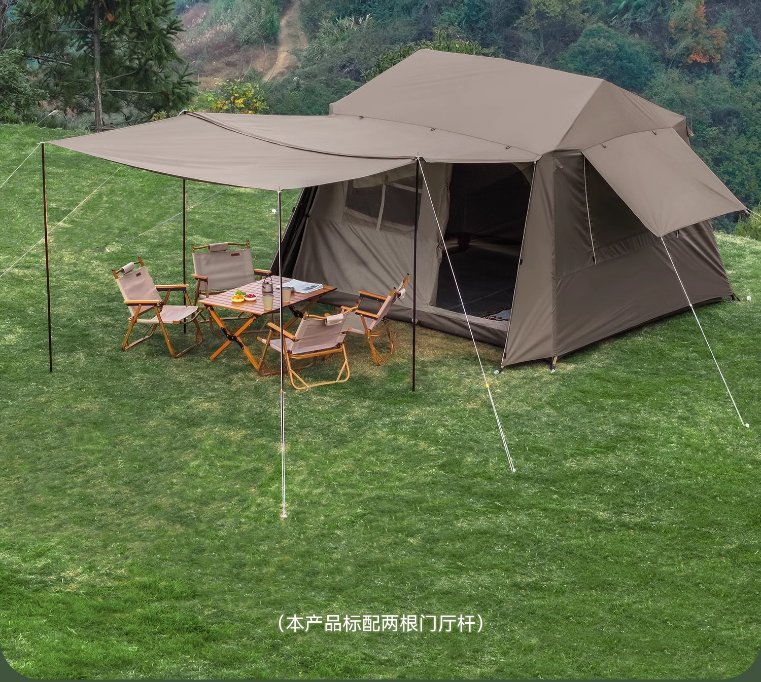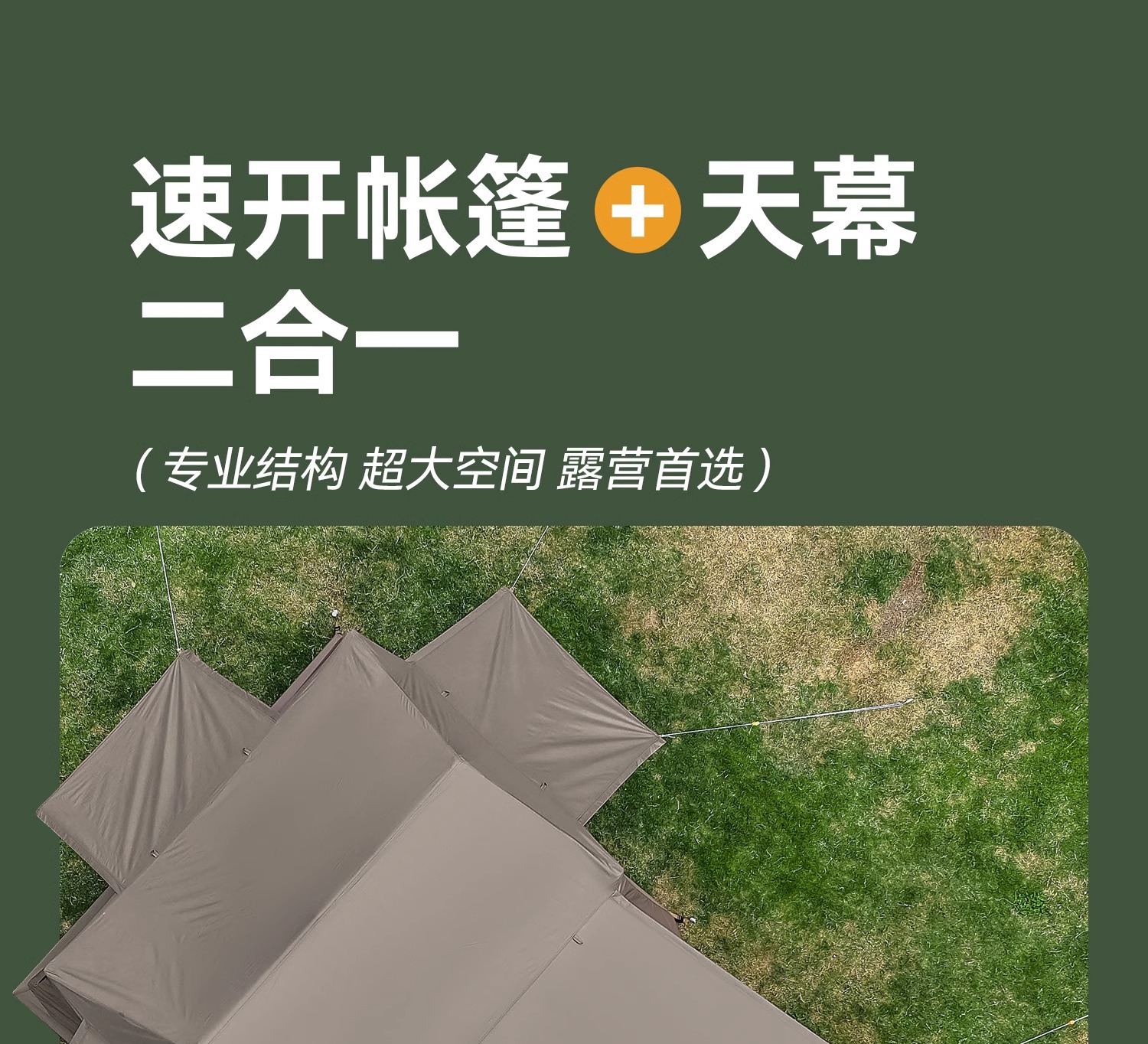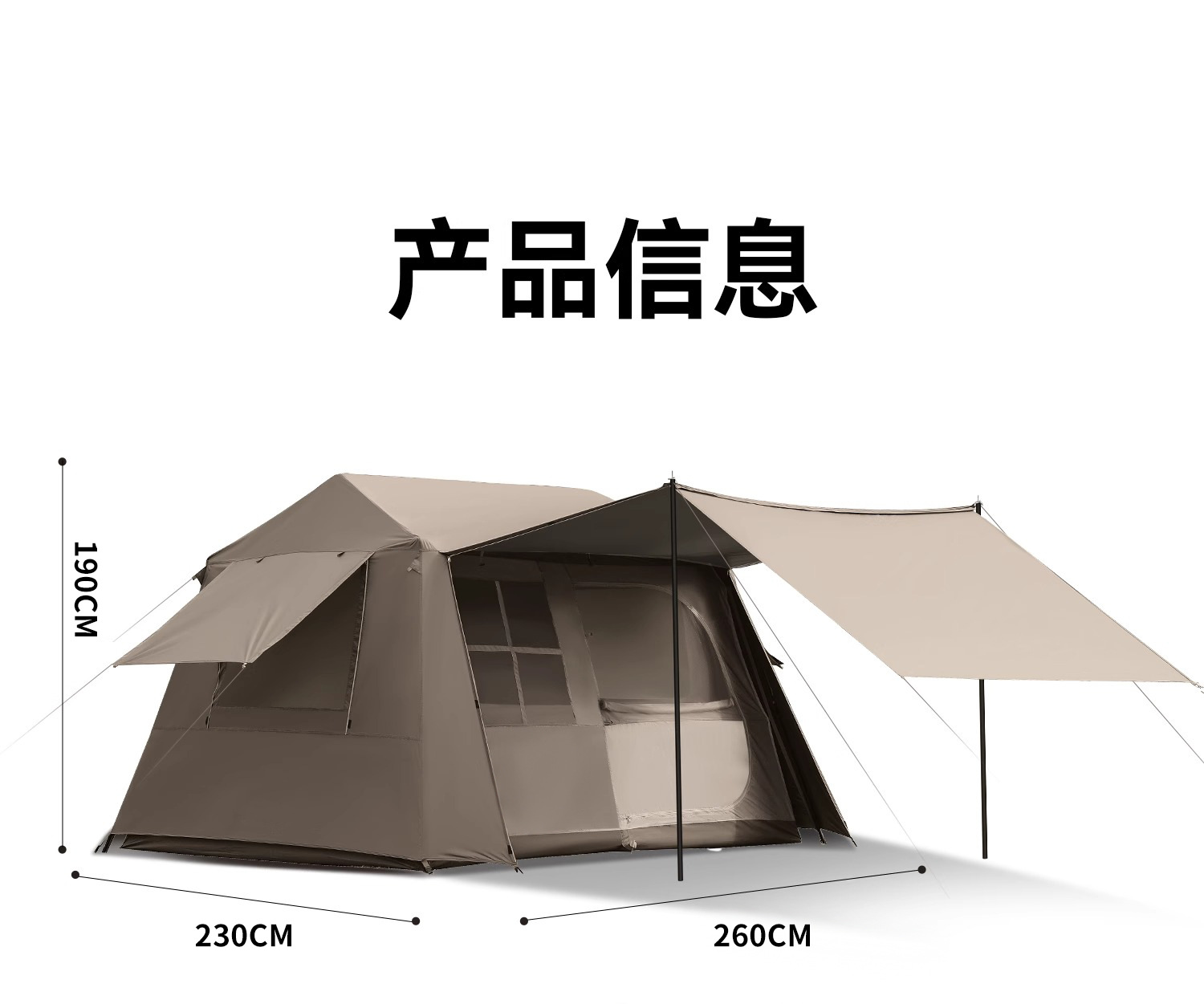 【屋脊揽山8.0】观景TPU全自动速开带烟囱口冷钛黑胶露营过夜帐