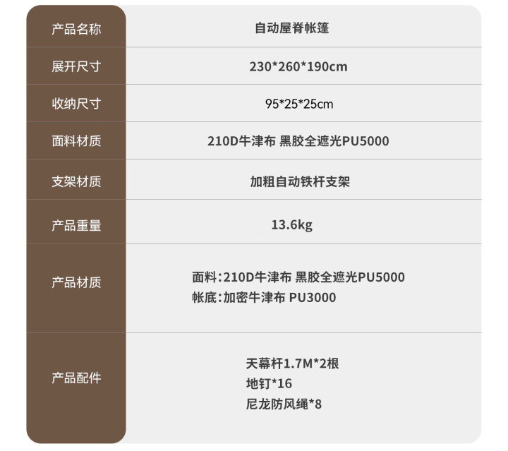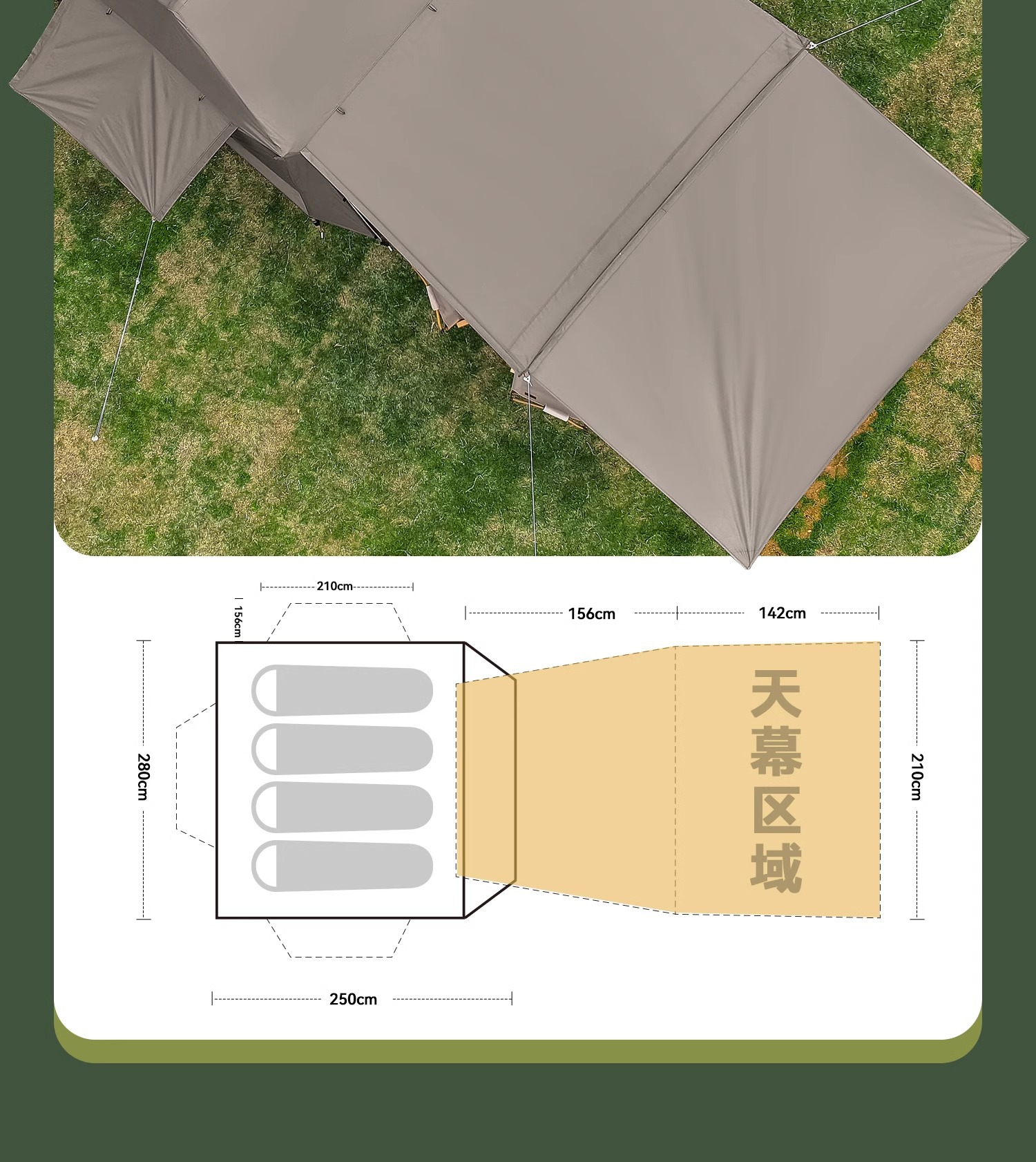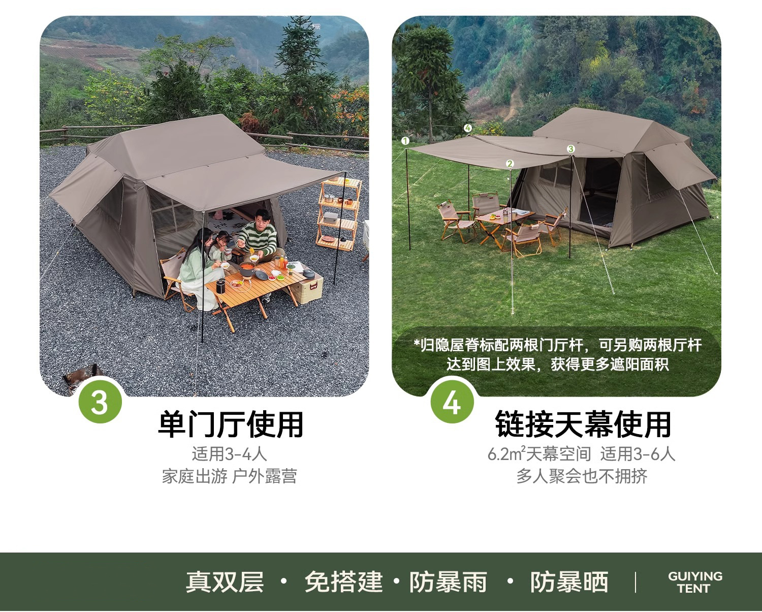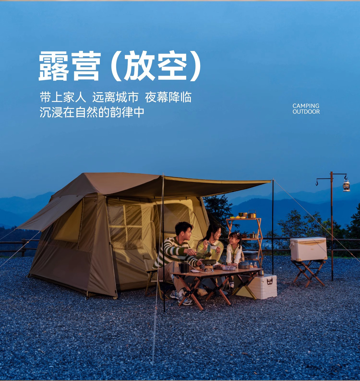 【屋脊揽山8.0】观景TPU全自动速开带烟囱口冷钛黑胶露营过夜帐