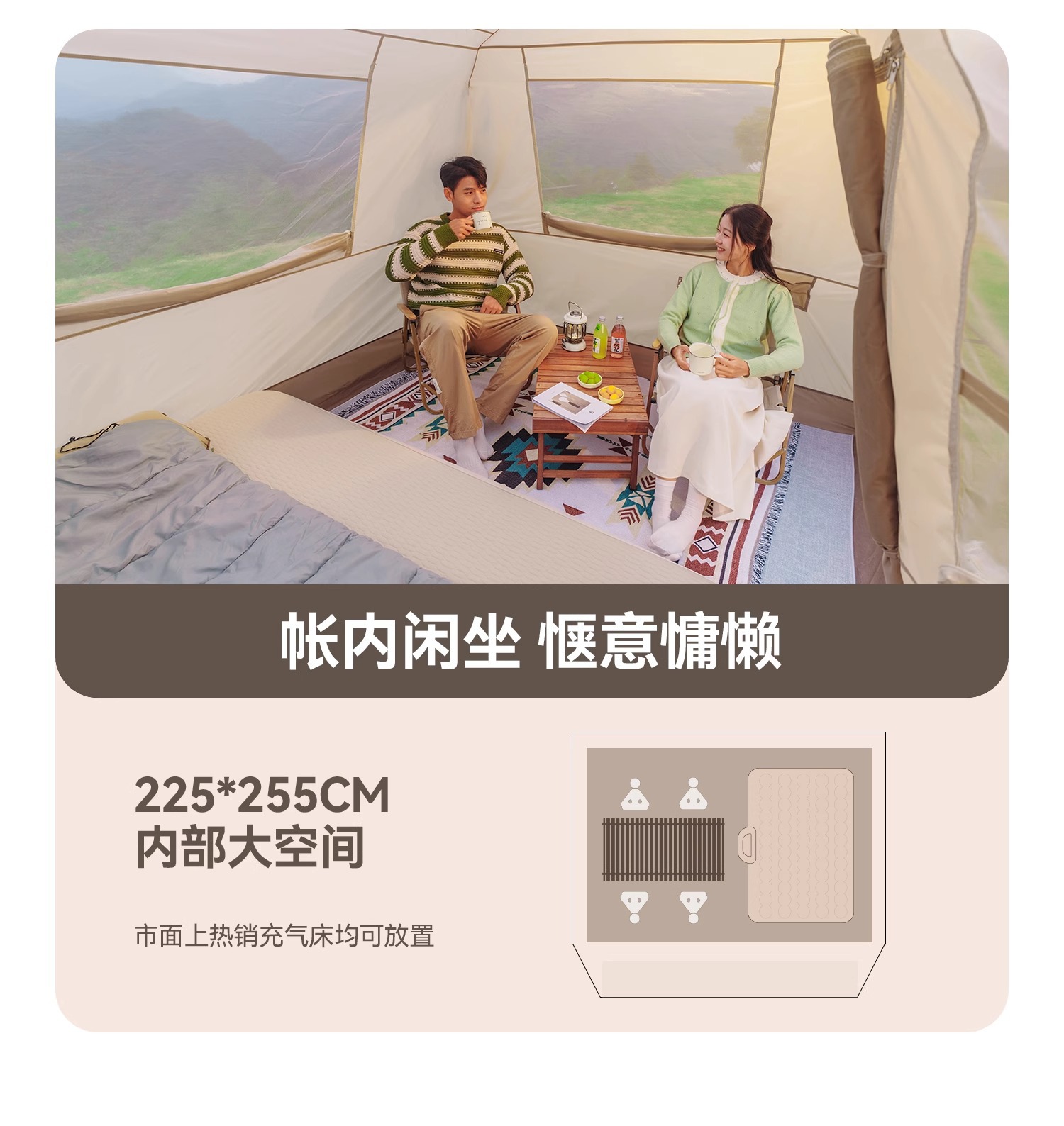 户外充气帐篷速开免搭露营帐篷便携式野餐露营防风充气帐篷6平米