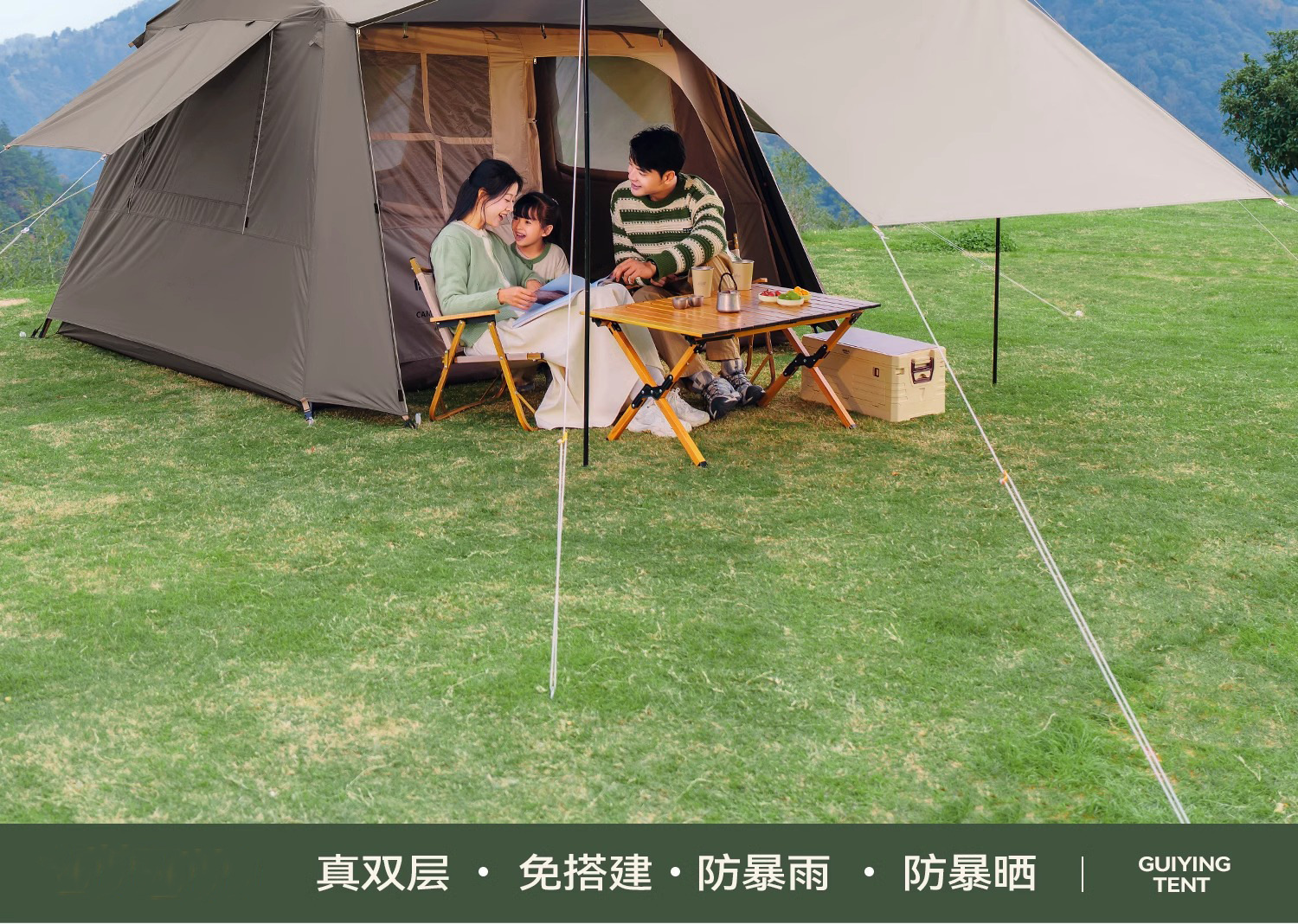 公狼屋外二重キャンプテント探検登山テント全自動携帯型防雨防風キャンプテント