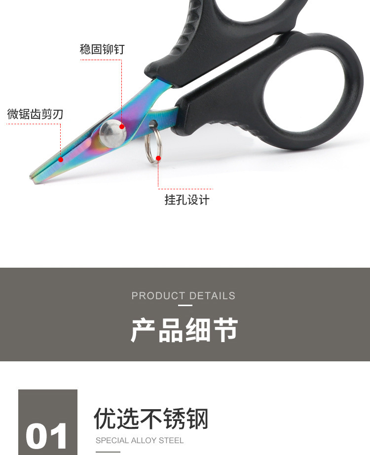 ステンレス製釣り用ハサミ、カラーチタンハサミ、鉛皮用小型ハサミ、PE専用小型ハサミ、強力な釣り糸用ハサミ、ラインカット用ハサミ