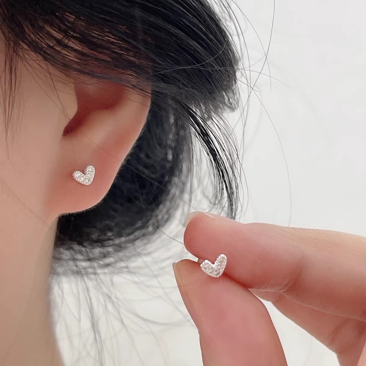 小巧简约爱心锆石螺丝耳钉女新款轻奢高级感甜美耳饰