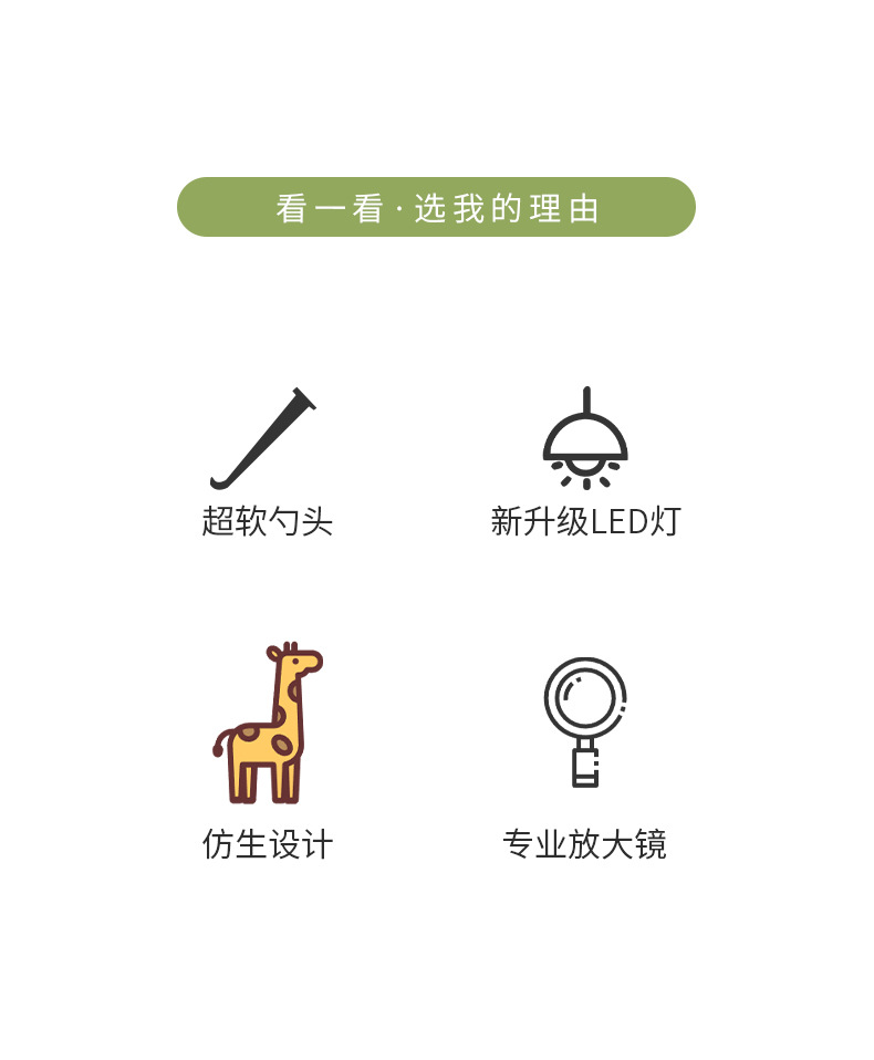 掏耳神器硅胶挖耳勺发光带灯软头宝宝儿童专用挖耳朵安全镊子可视