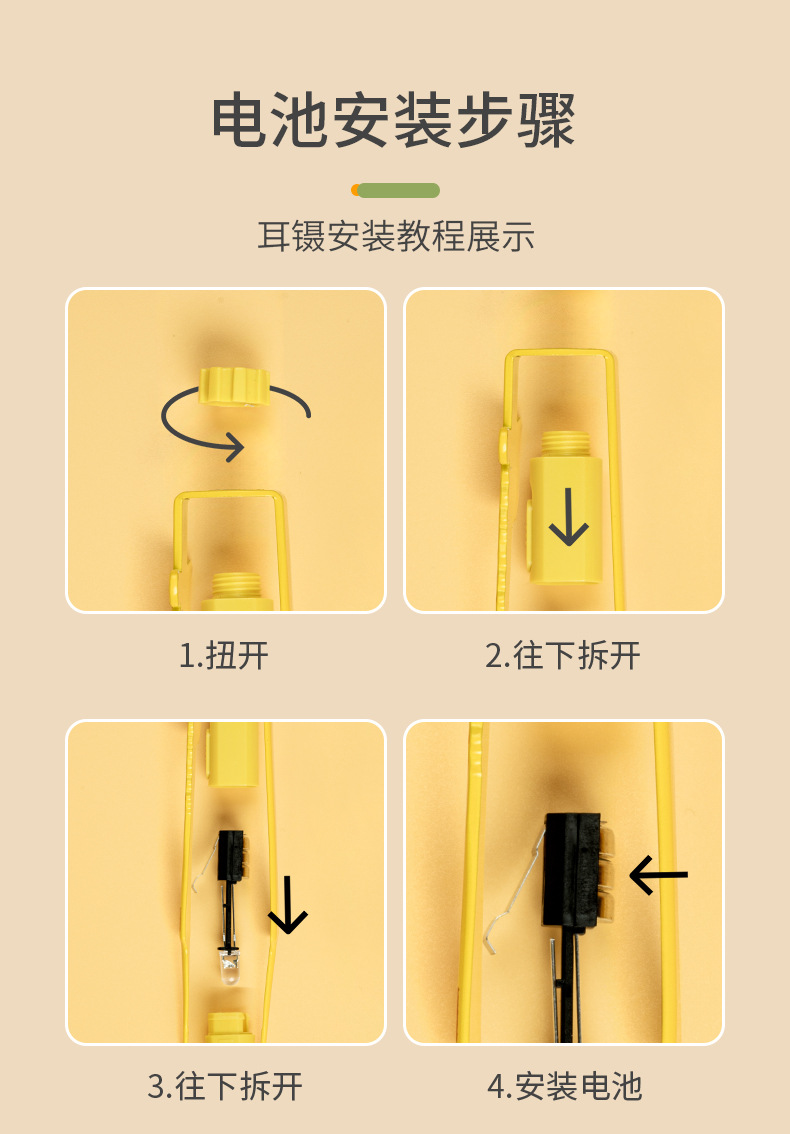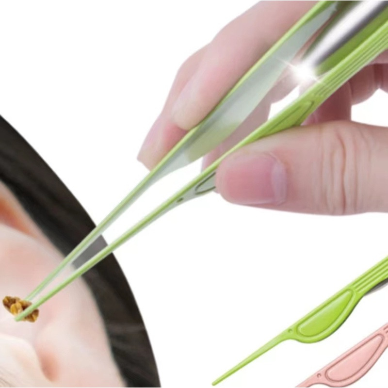 ステンレスの発光は耳のピンセットを採取します。子供は耳の清潔器を取ります。