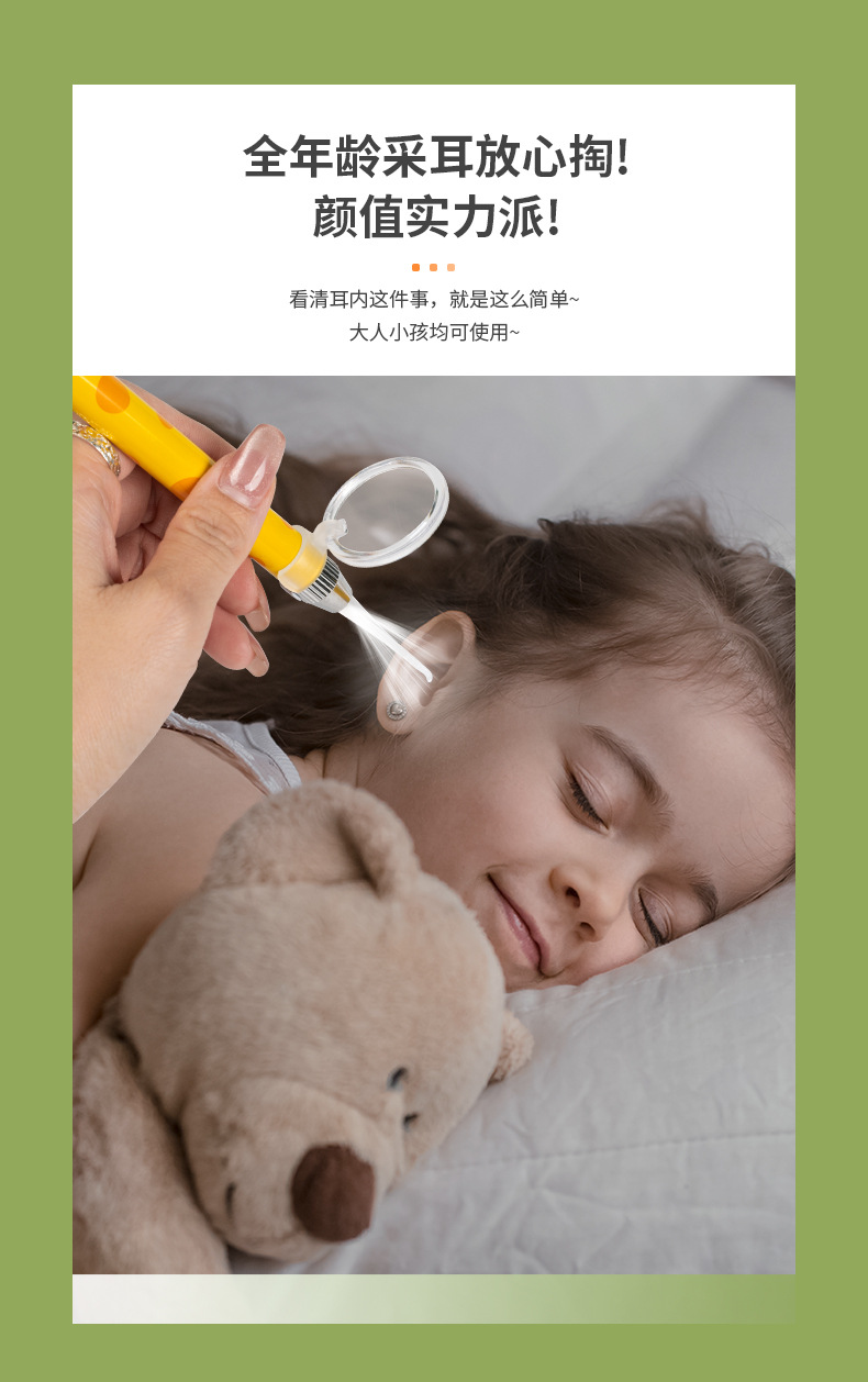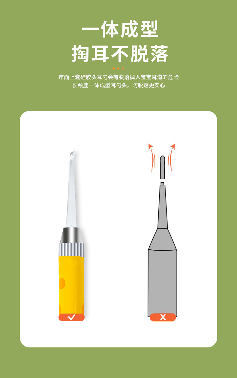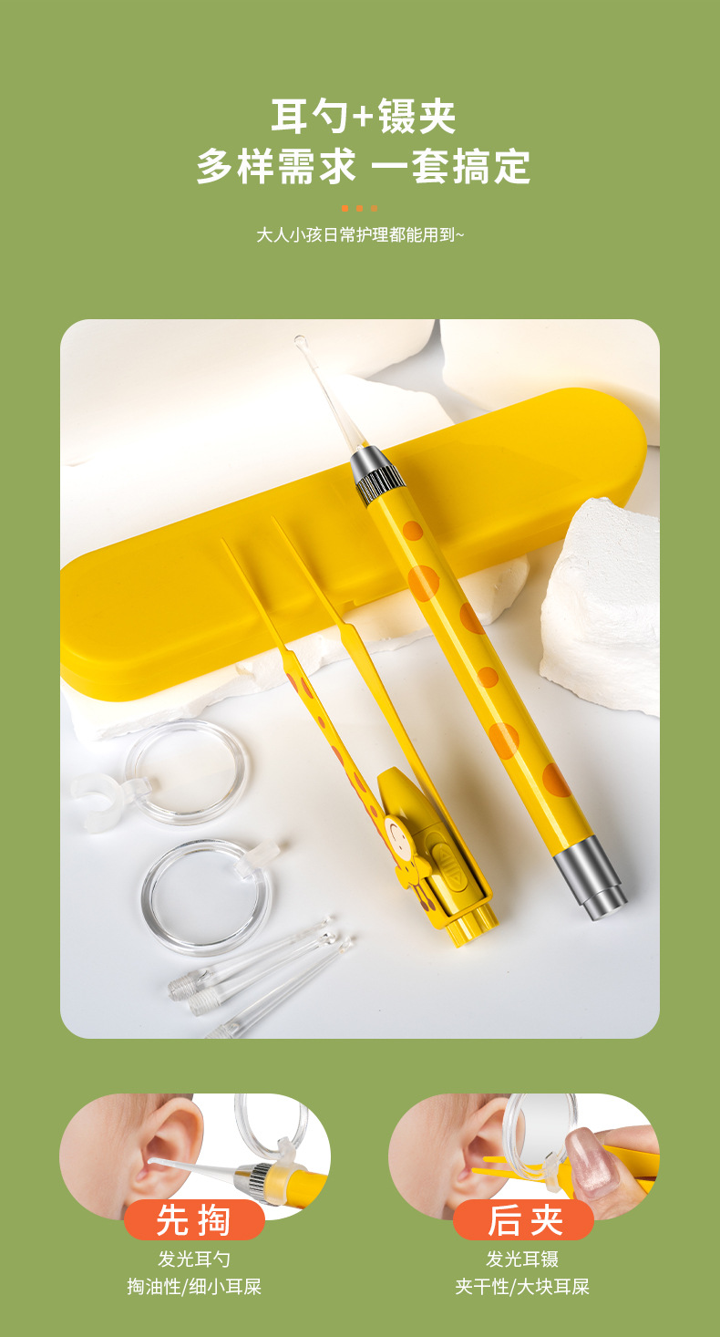 耳かきツール、発光ライト付きソフトヘッド、赤ちゃん用耳垢除去、子供専用耳かき、安全なピンセット
