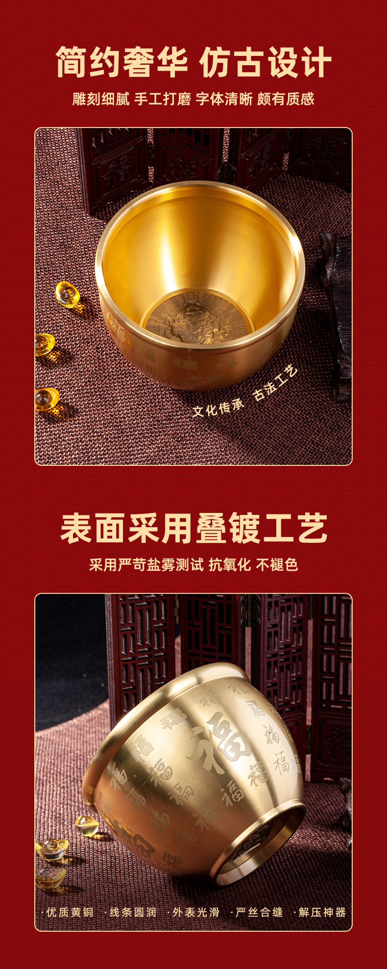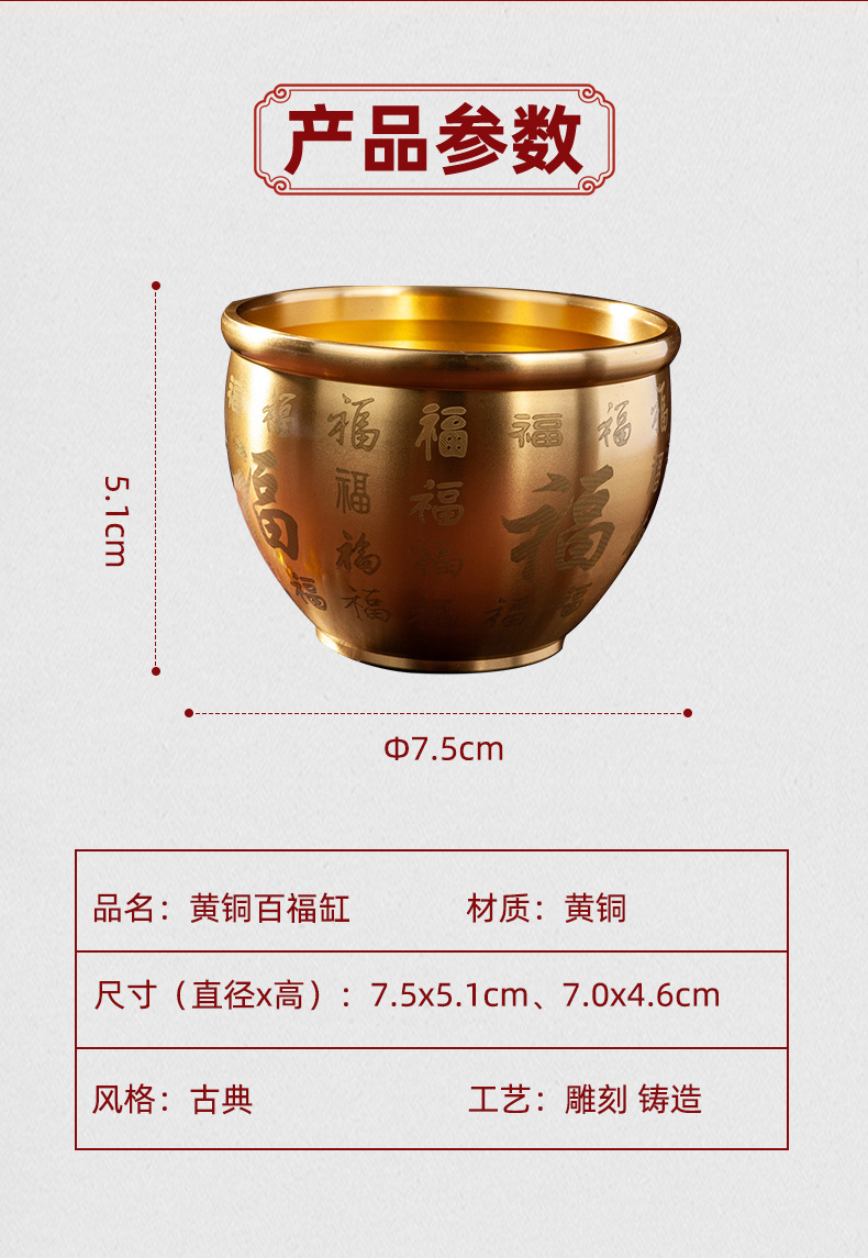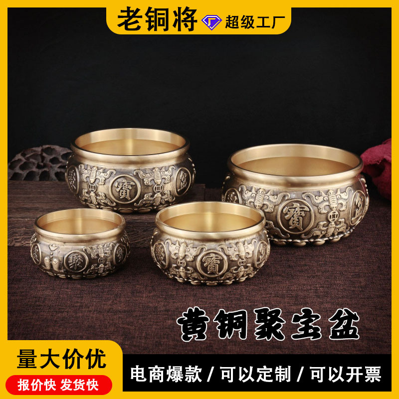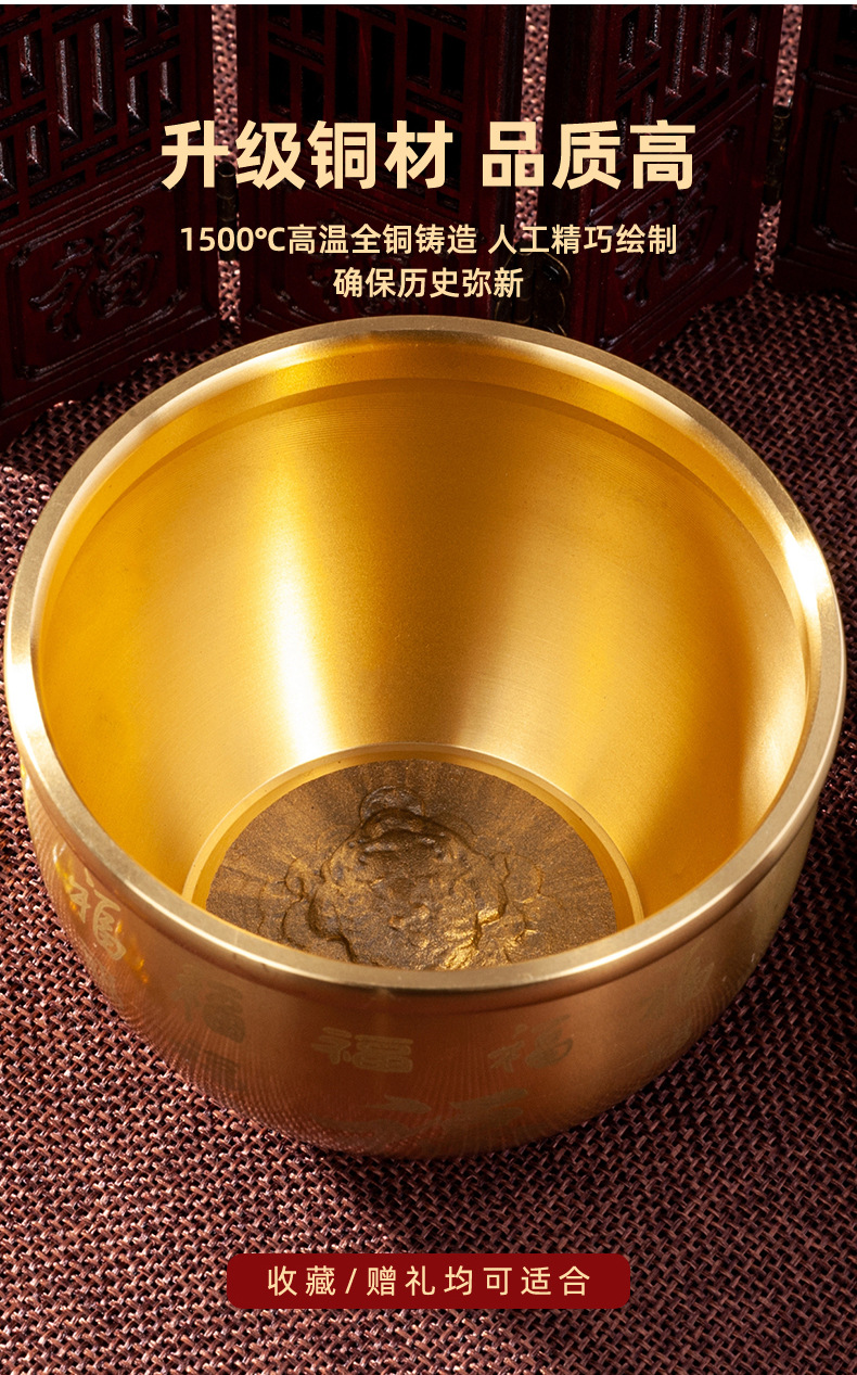 黄銅聚宝盆招財小置物百福杯純黄銅米かめ中国式供仏銅かめ事務室銅置物