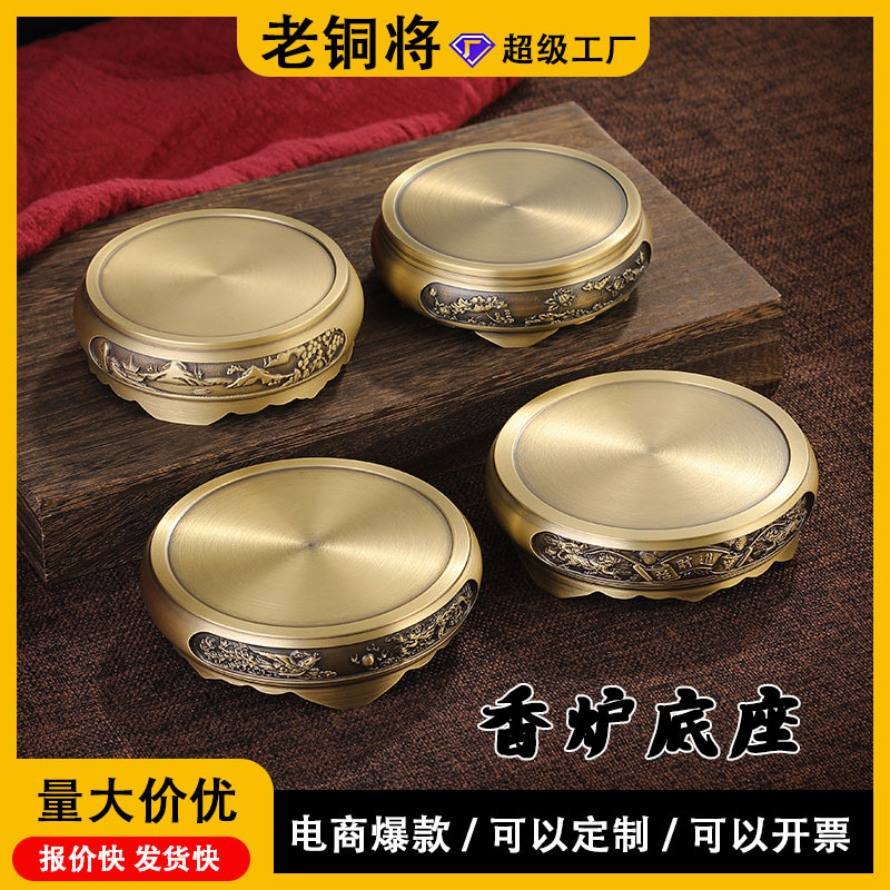 純銅香炉台座真鍮台座蓮花台座円形中国式レトロ置物ホーム小銅器工芸品
