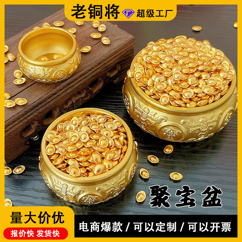 メーカー直送真鍮聚宝盆米かめ沙金合金小元宝装飾品店舗金属招財銅置物