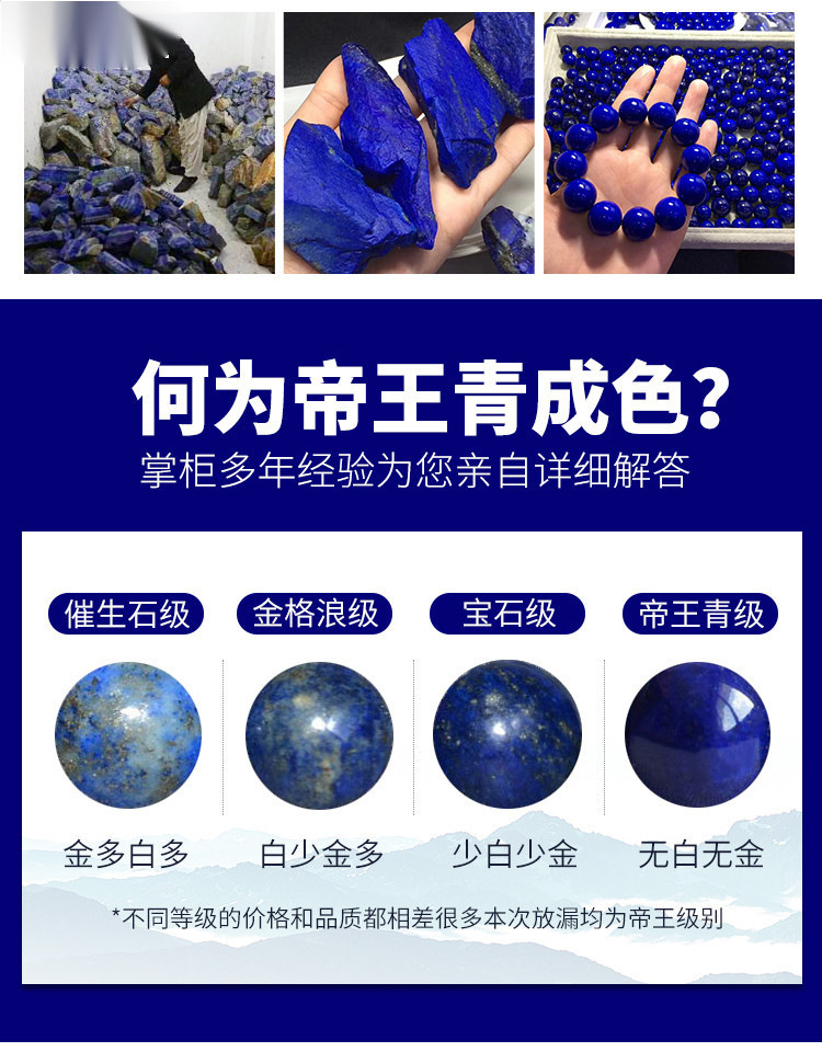 帝王青金石散珠7a収蔵級天然原鉱アフガニスタン無白無金DIY単珠玉玉配珠