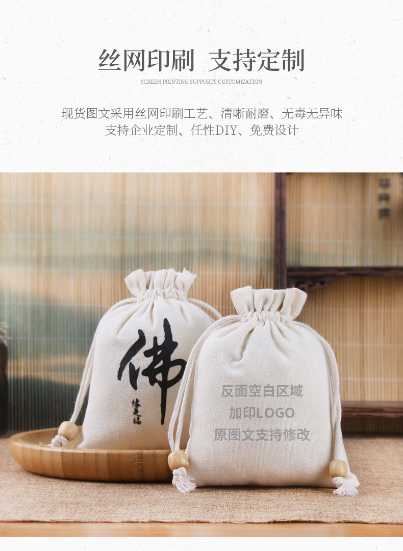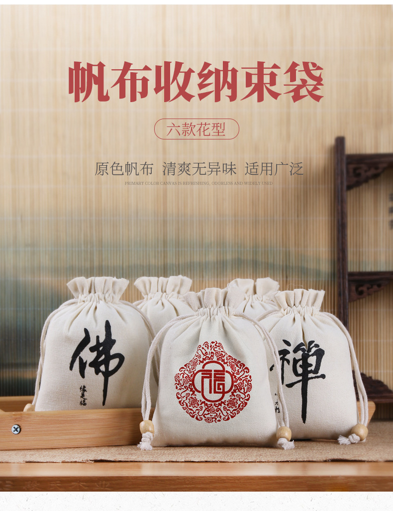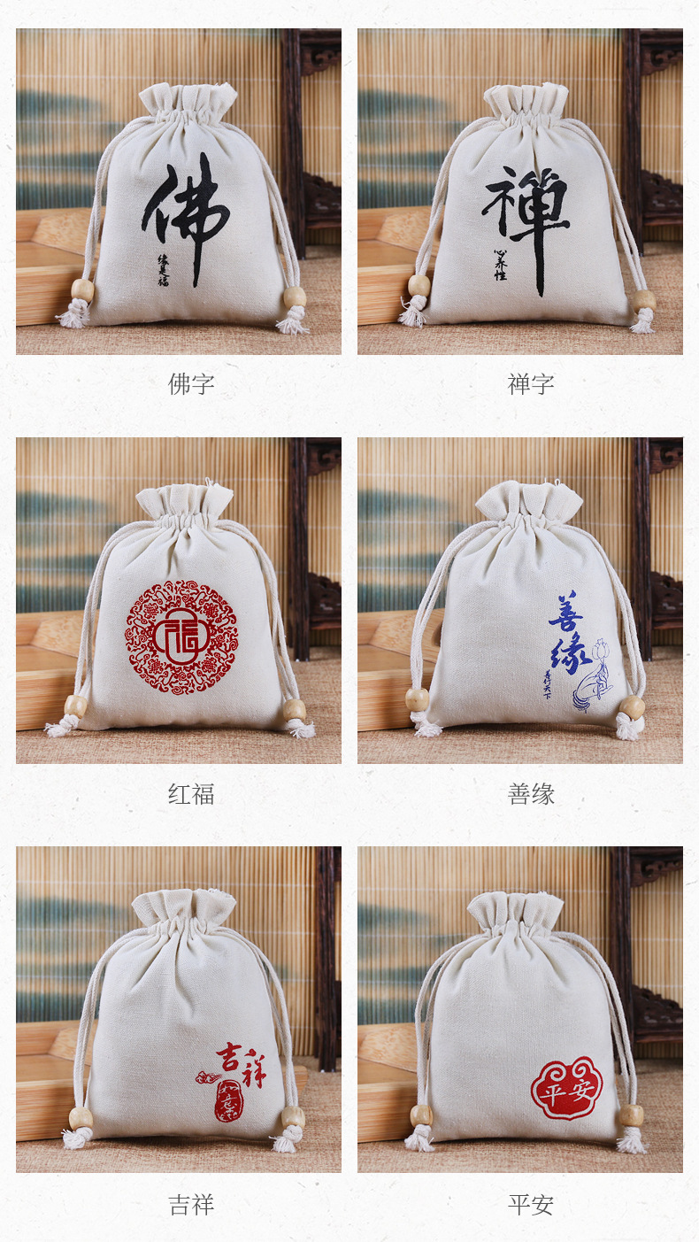 キャンバスバッグ紐引きポケット麻布袋寺院国風仏珠袋手串袋綿布袋収納袋アクセサリー袋
