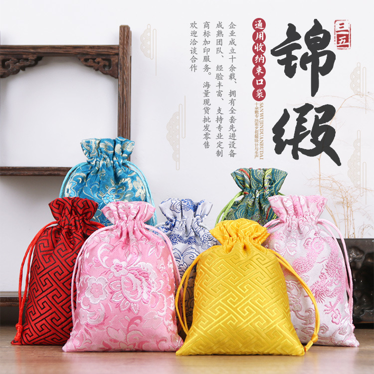 高級女子の錦のサテンの厚い縄の口のかわいいアクセサリーの袋の文はブレスレットのプリントの刺繍の仏珠の収納袋を遊びます。