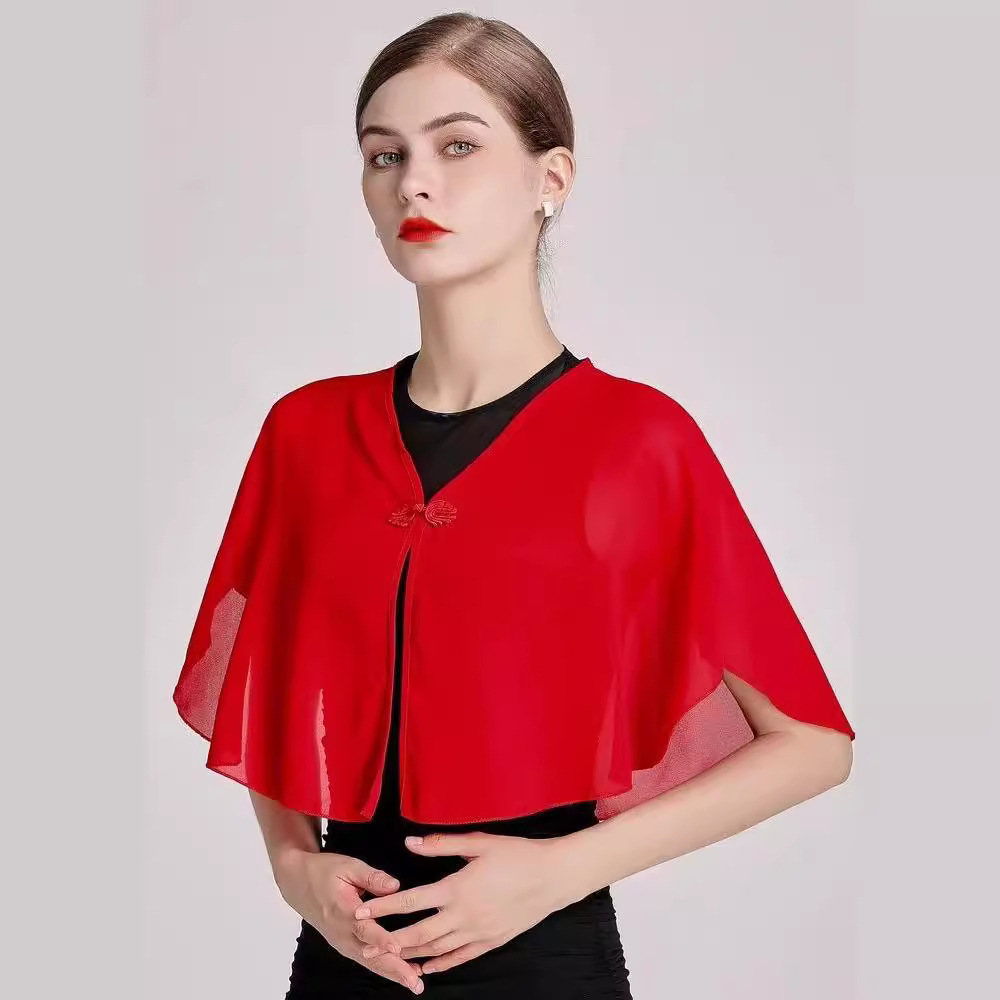 シフォンのマントの女性の日焼け止めのショールの女性の百合のカーディガンはスカートの外で薄いコートの短いシフォンの小さいショールを掛けます。