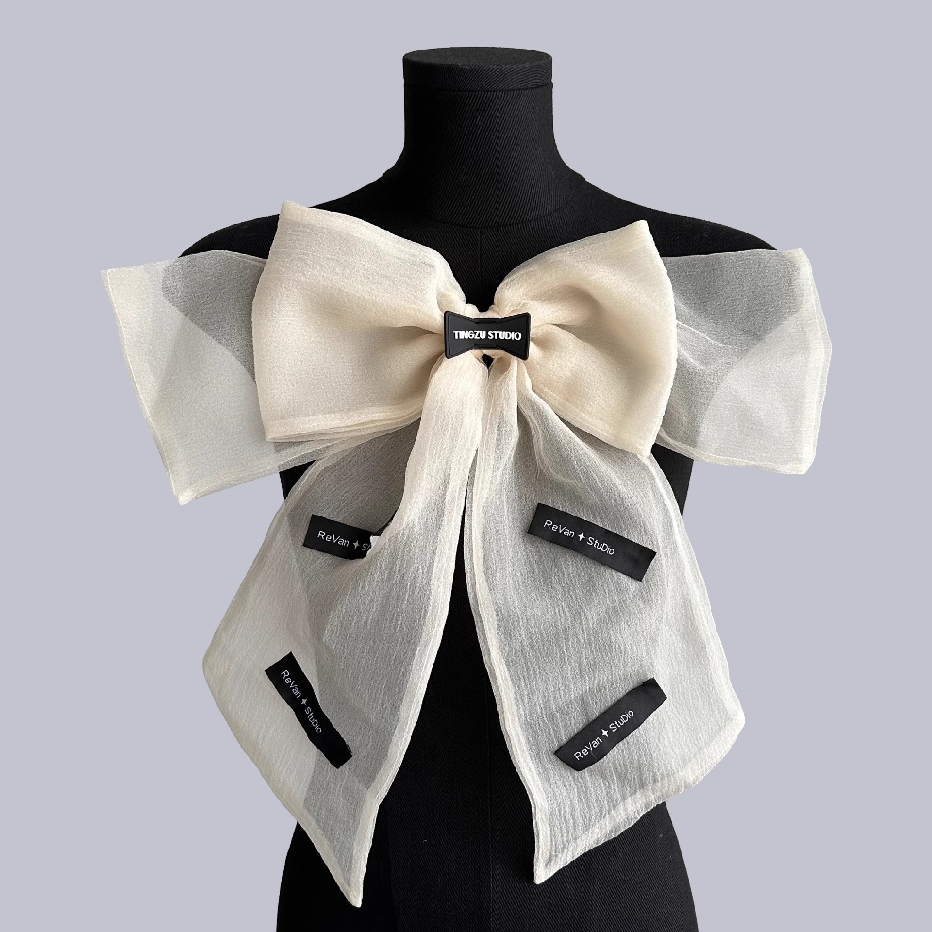 フレンチアプリコット/ブラックツートンカラー二層オーガンジー立体リボンDIYロリータドレスウェディングドレスピン装飾