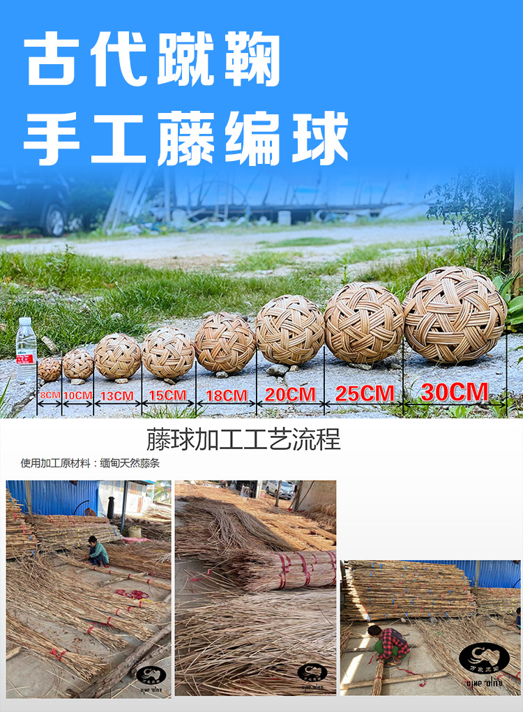 手作り編み蹴鞠球天然製藤球撮影道具学校運動会ゲーム古代サッカー
