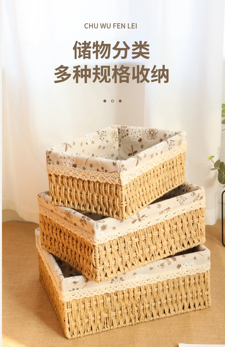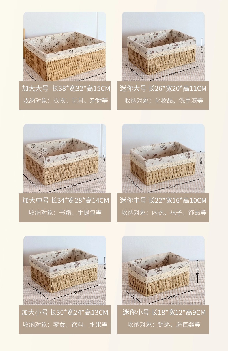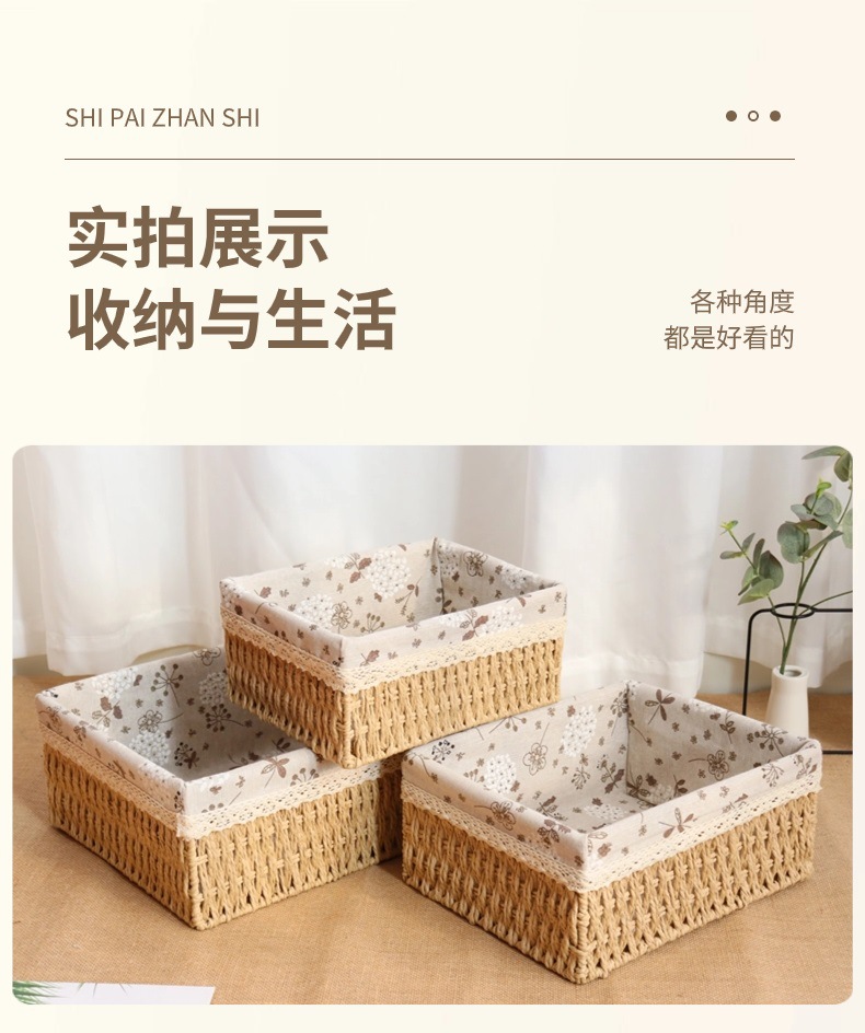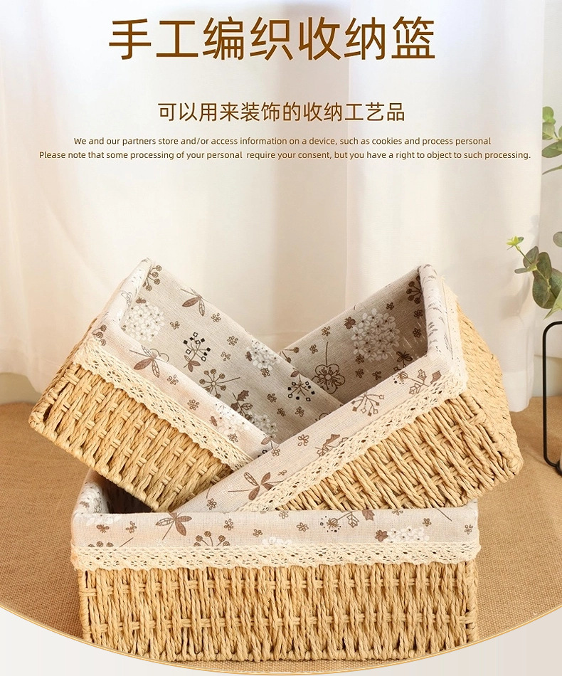 編まれた収納バスケットコーヒーテーブルリビングルーム雑貨衣類化粧品収納ボックス模造籐収納ボックスデスクトップ収納ボックス