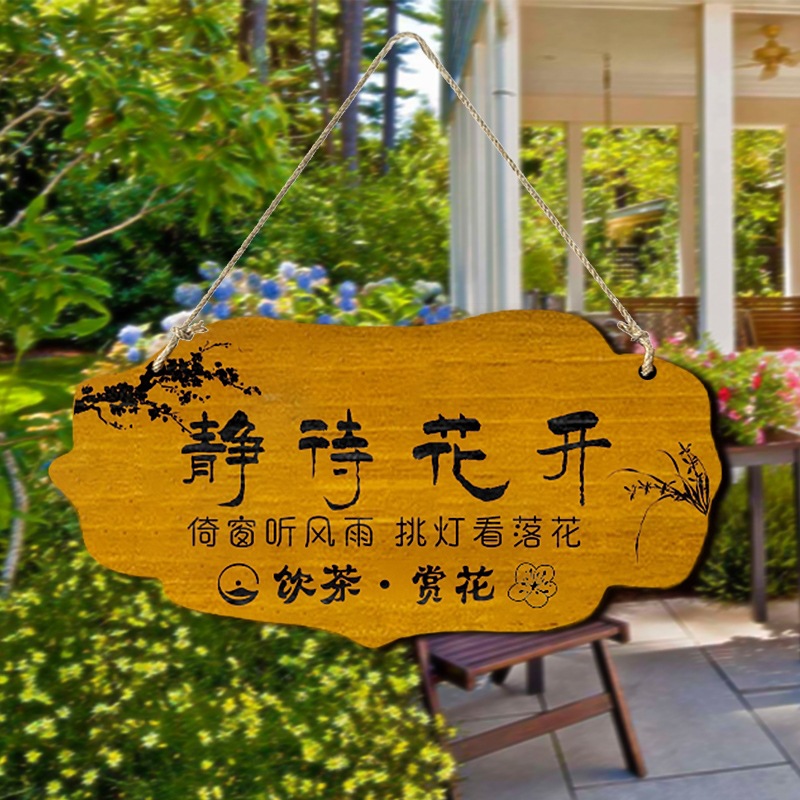 花が咲くのを待ってください、我が家の庭に木製の壁掛け、お茶を飲みながら花を鑑賞するバルコニーの壁掛け、シンプルな雰囲気、クリエイティブなドアサイン