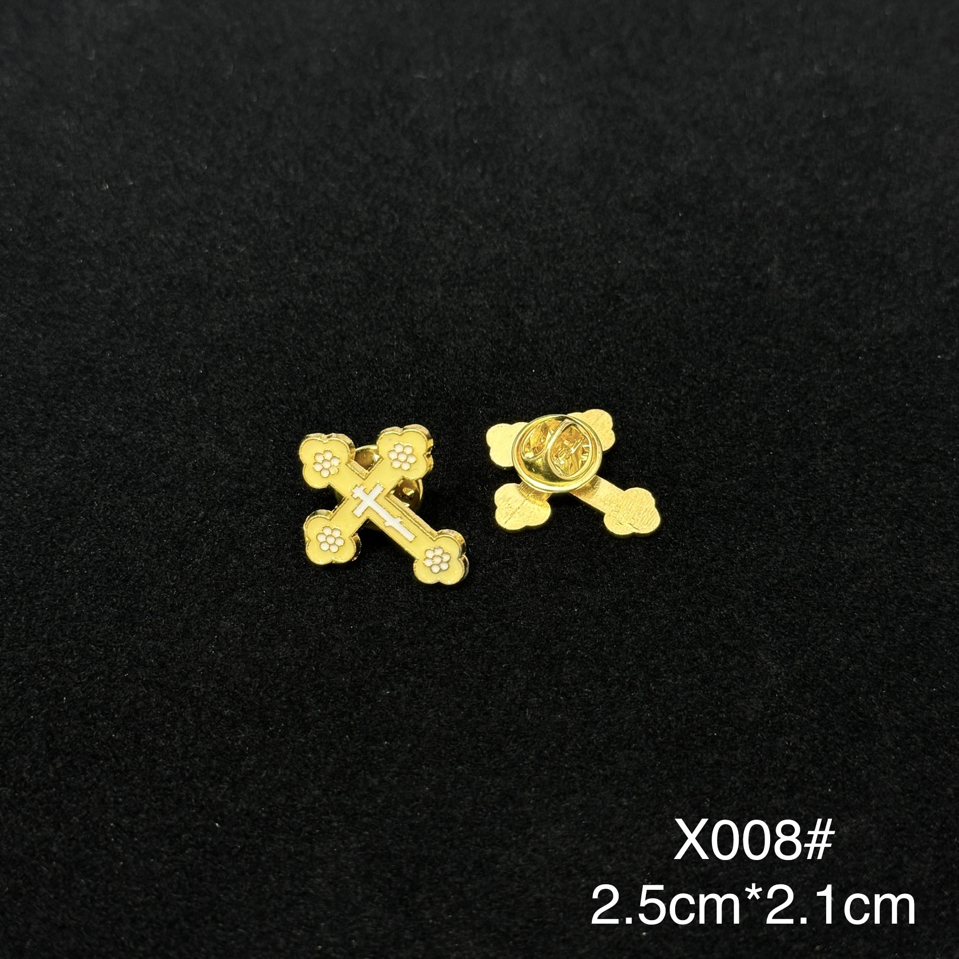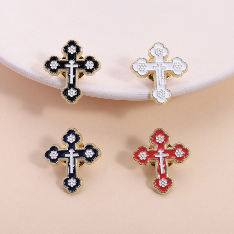 欧美跨境新品外贸十字架胸针金属徽章服装配饰领针勋章批发