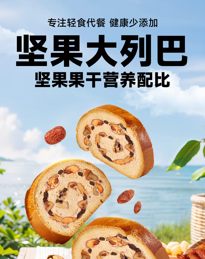 全麦面包果仁车轮坚果大列巴粗粮早餐面包欧包饼零食吐司无添蔗糖
