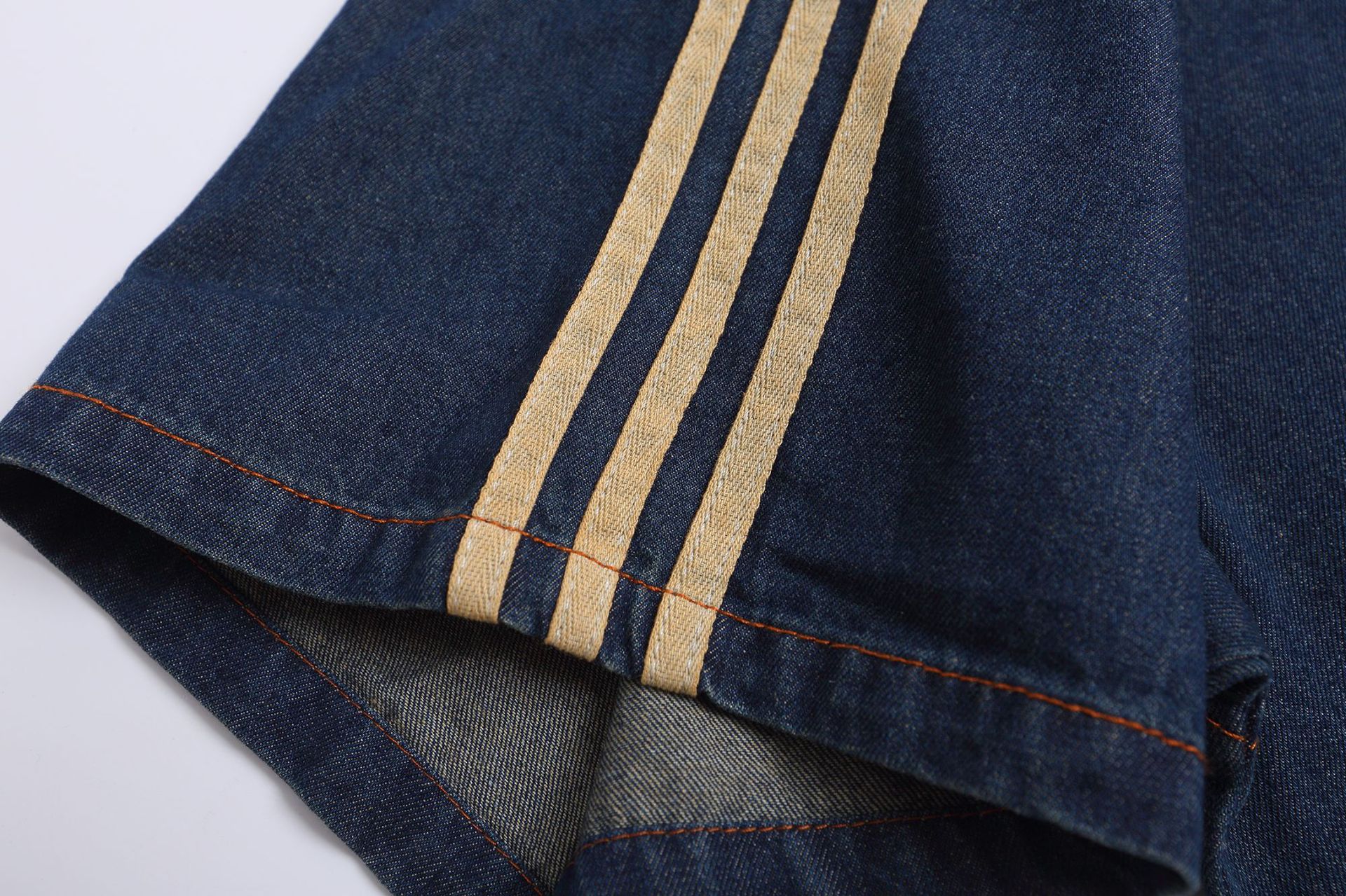 潮牌は辺を切って豹の紋様のデニムの半袖の男性のカジュアルな5分のデニムの服のゆったりしている半袖の日本のデニムのショートパンツをつなぎ合わせます。
