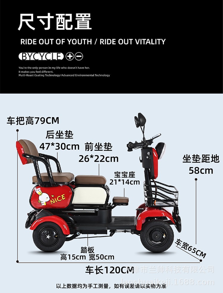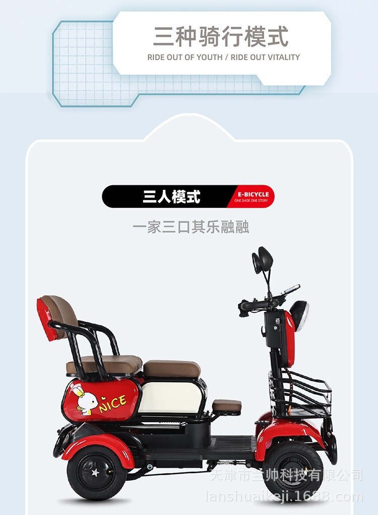 跨境外贸老年代步车电动四轮豪华小型防摔倒助力接送孩子电瓶车