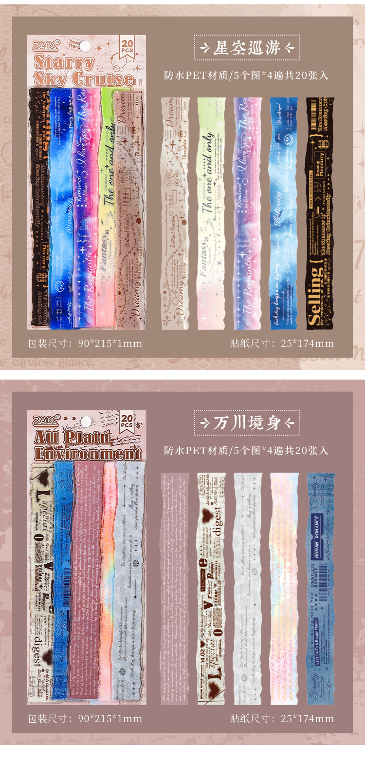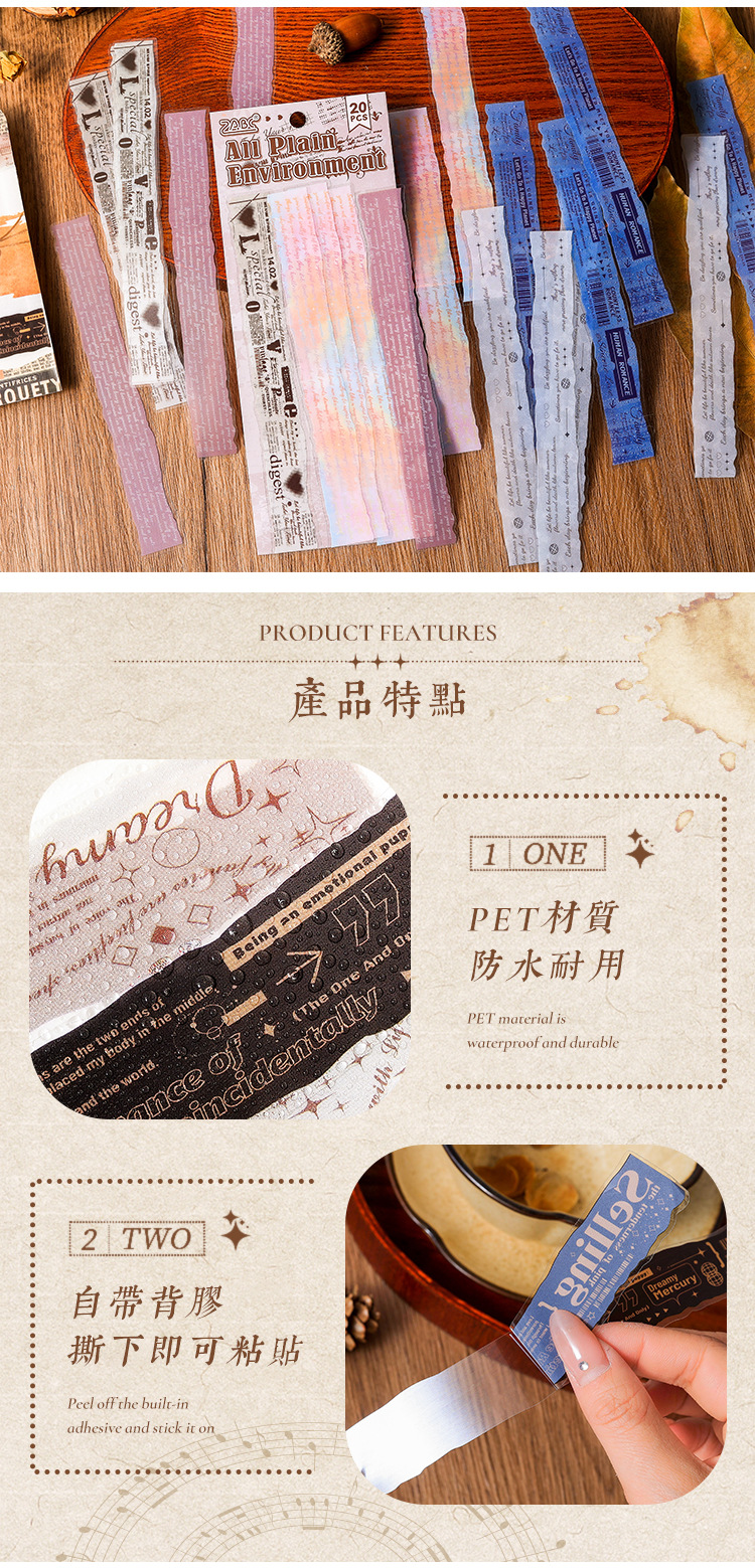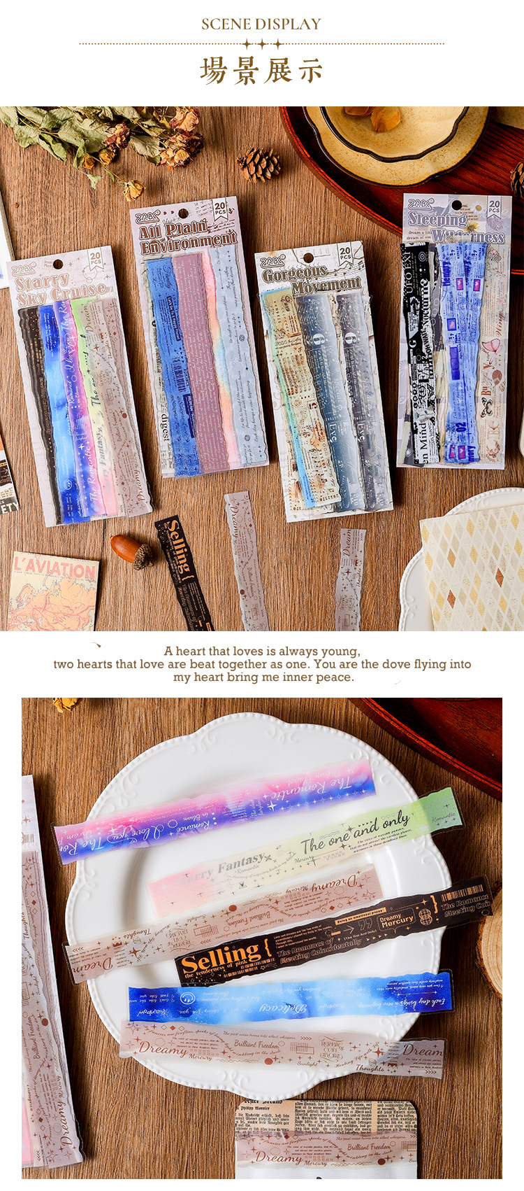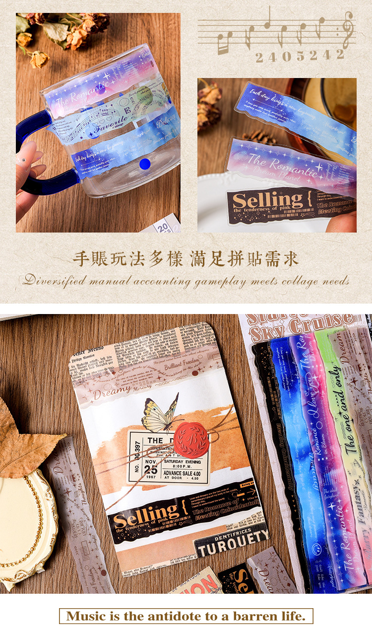 飛羽夢境透明防水petシールdiy手帳日記貼り絵クロスボーダー復古系英語長条シール