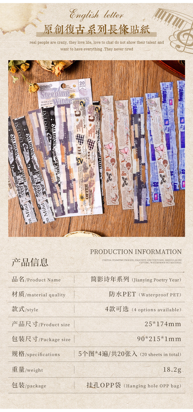 簡影詩年透明防水petシールdiy手帳日記貼り絵クロスボーダー復古長条英語アルファベット貼り
