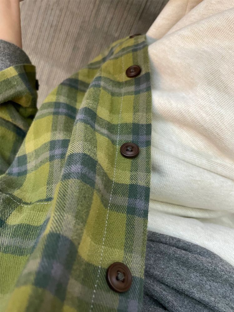 格子のシャツの女性の2025秋の毛はコートの外でレトロな港の味の韓国版を着てゆったりしています。