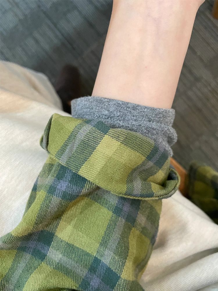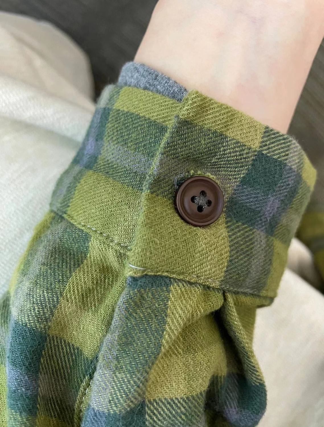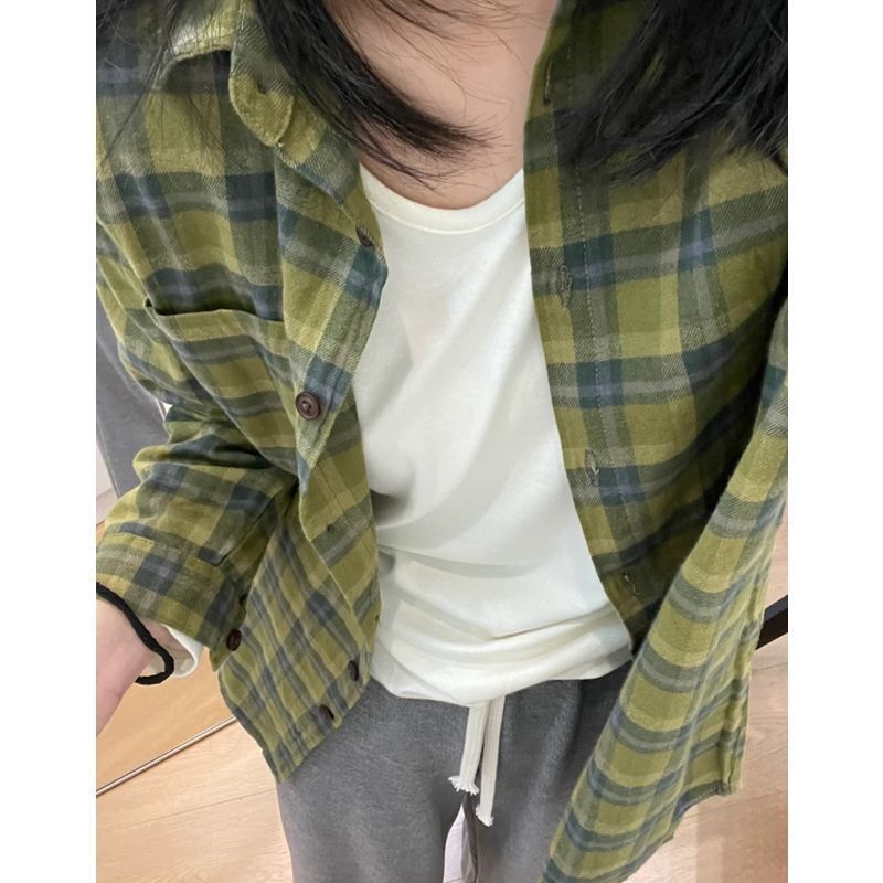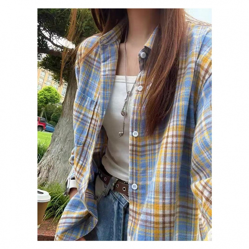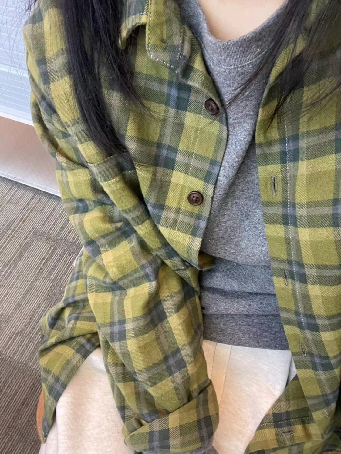 复古显白~双面棉纱格子衬衫女!秋韩系百搭宽松叠穿休闲衬衣薄外套