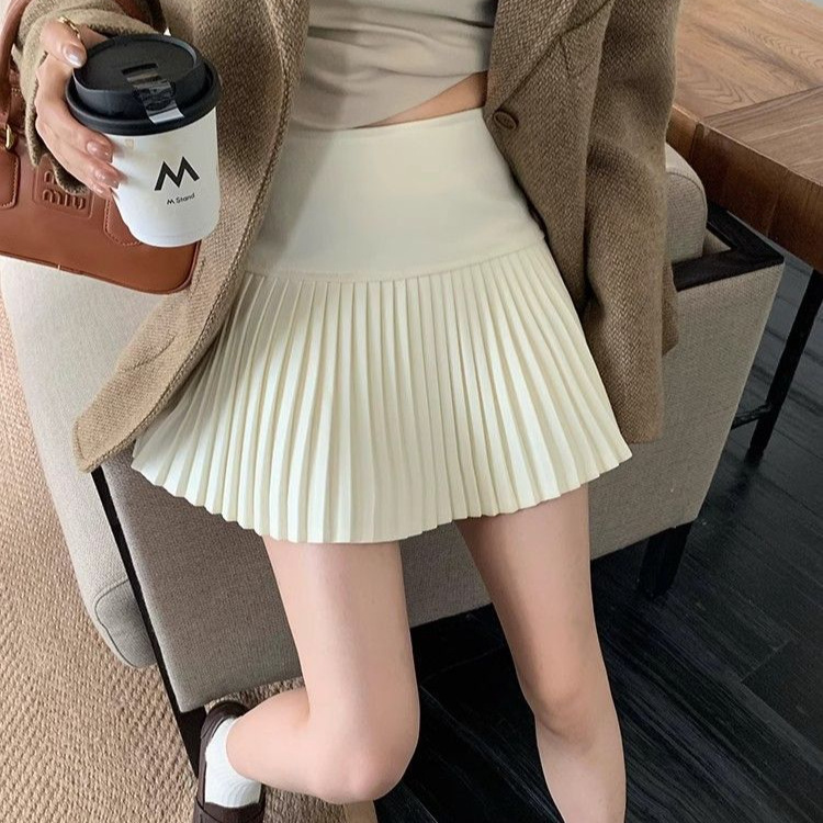毛は厚い百シワの半身のスカートの女性の春秋の韓国版の新型の高い腰はやせているファッションの防光のa字の短いスカートを現します。