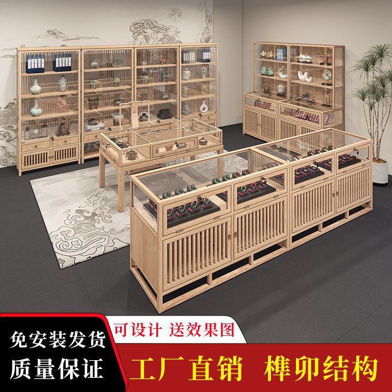 中国無垢材ジュエリーディスプレイキャビネットジュエリーガラスカウンター翡翠ディスプレイキャビネット壁キャビネット棚中島ディスプレイキャビネット