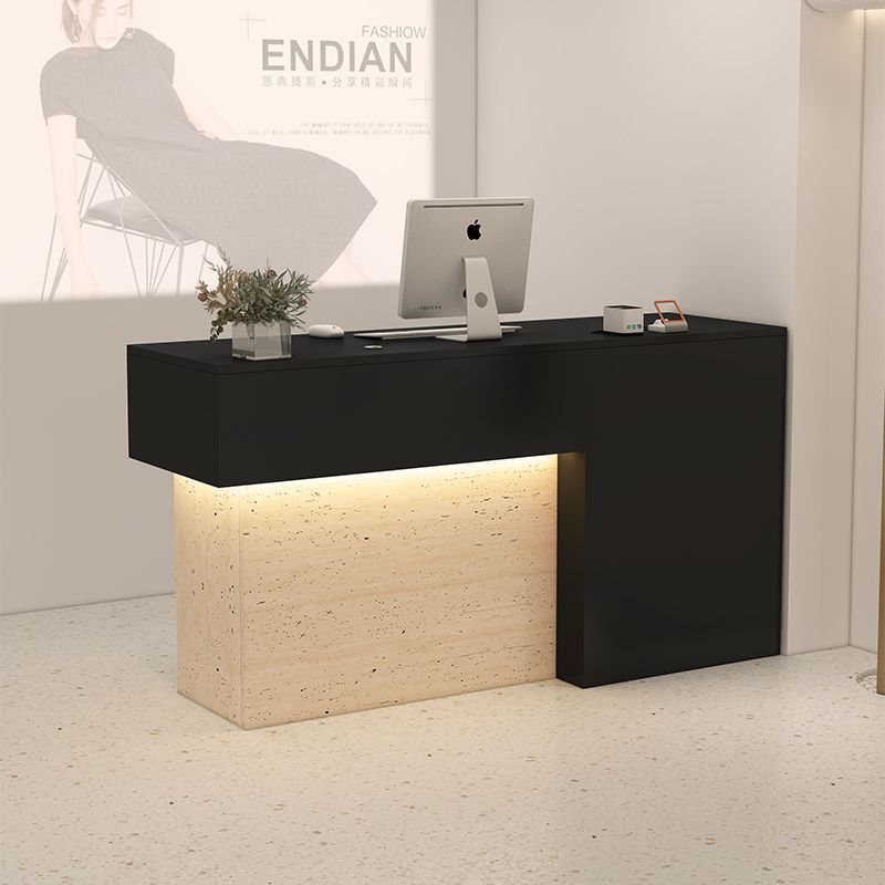 照明付きレジカウンター 衣料品店 婦人服店 バーカウンター 石目調 小型受付カウンター フロント シンプル モダン シンプル