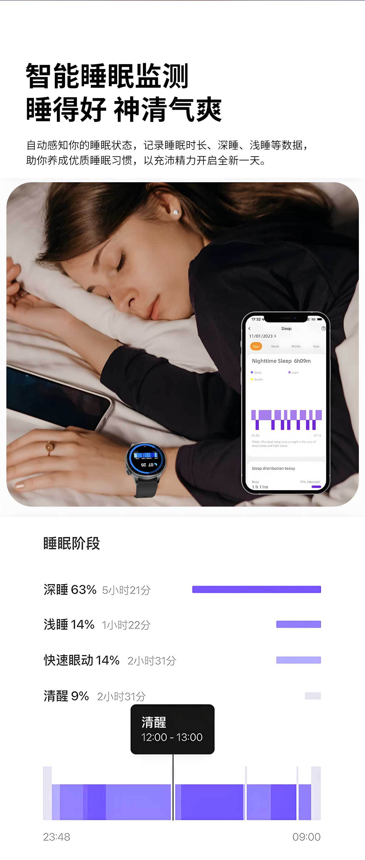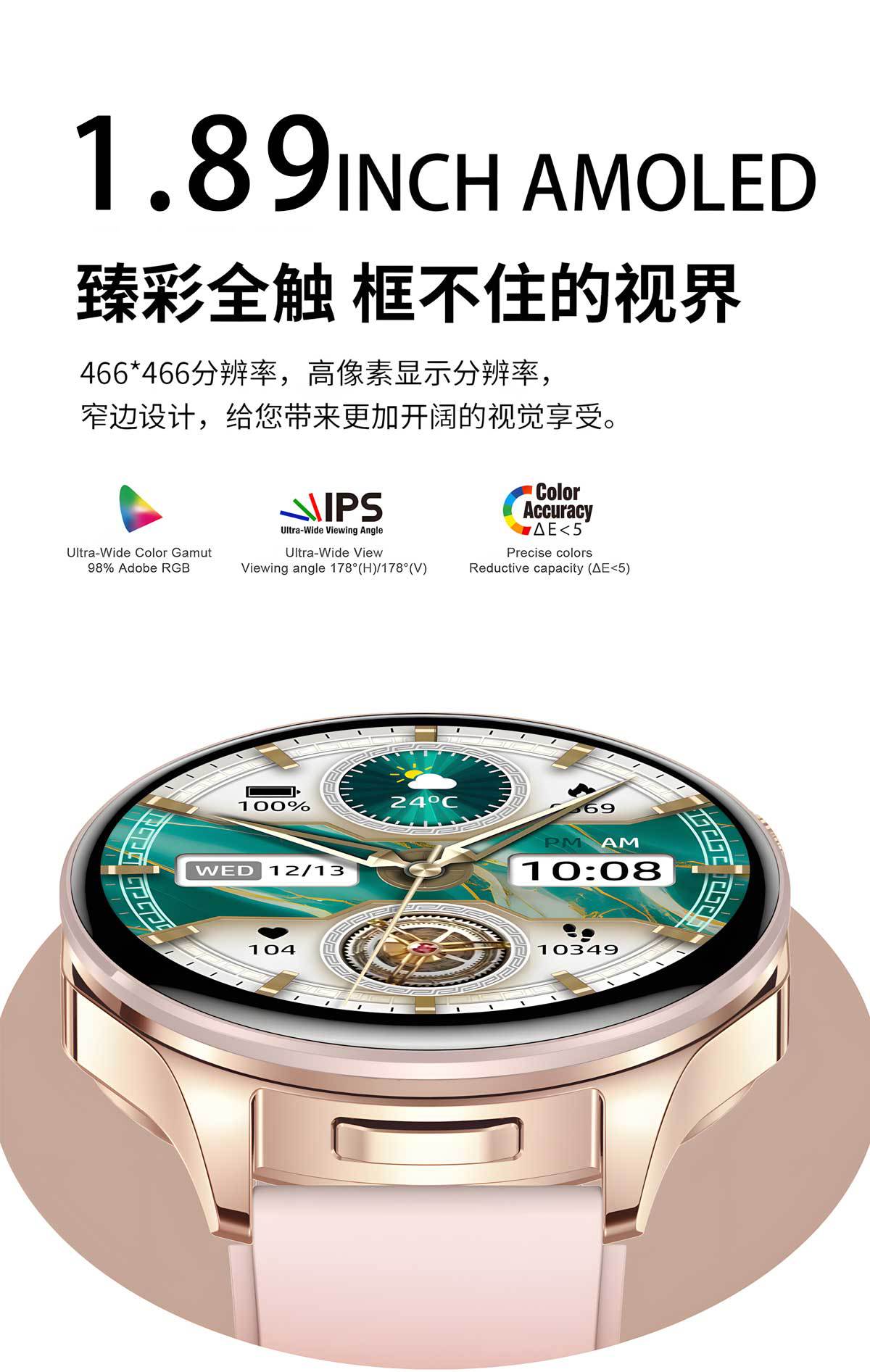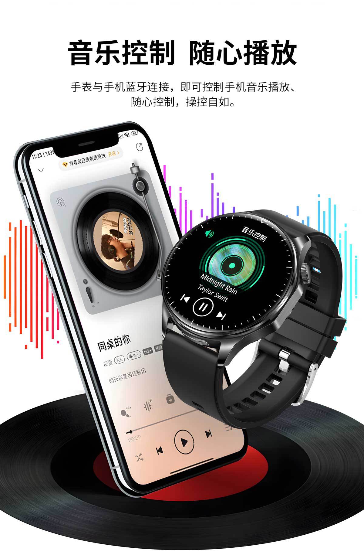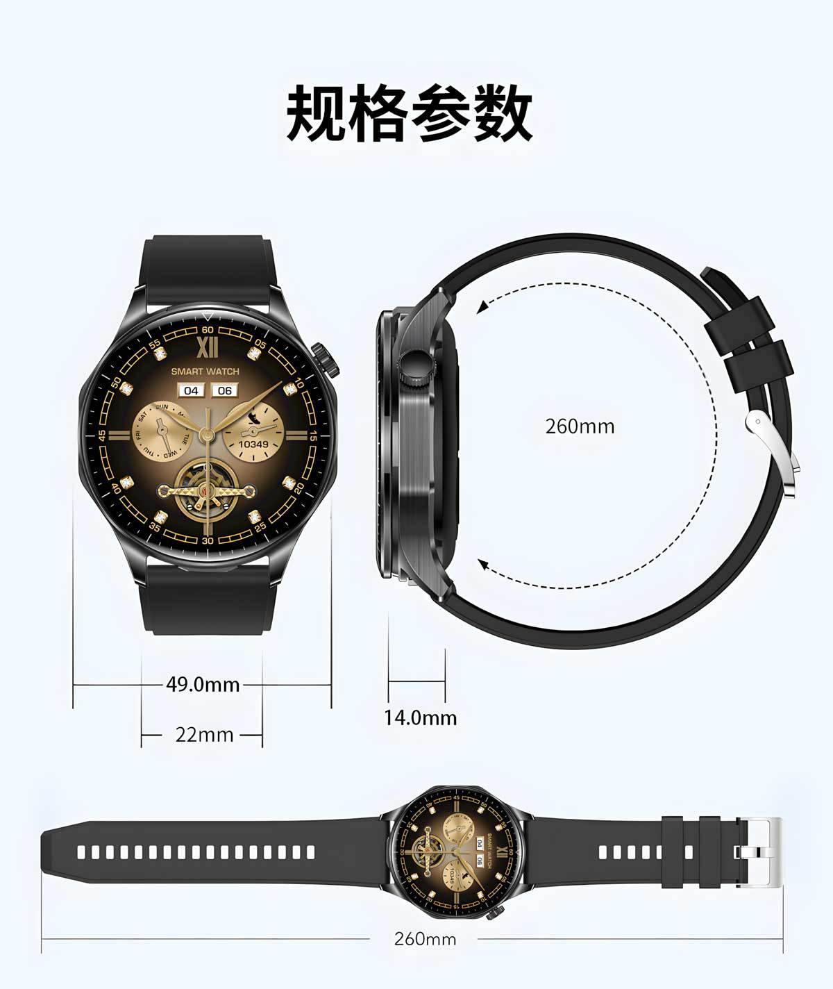 功能 计步,心率监测,血压测量,社交娱乐,蓝牙通话,NFC功能,智能提醒,遥控自拍,睡眠监测,血氧检测