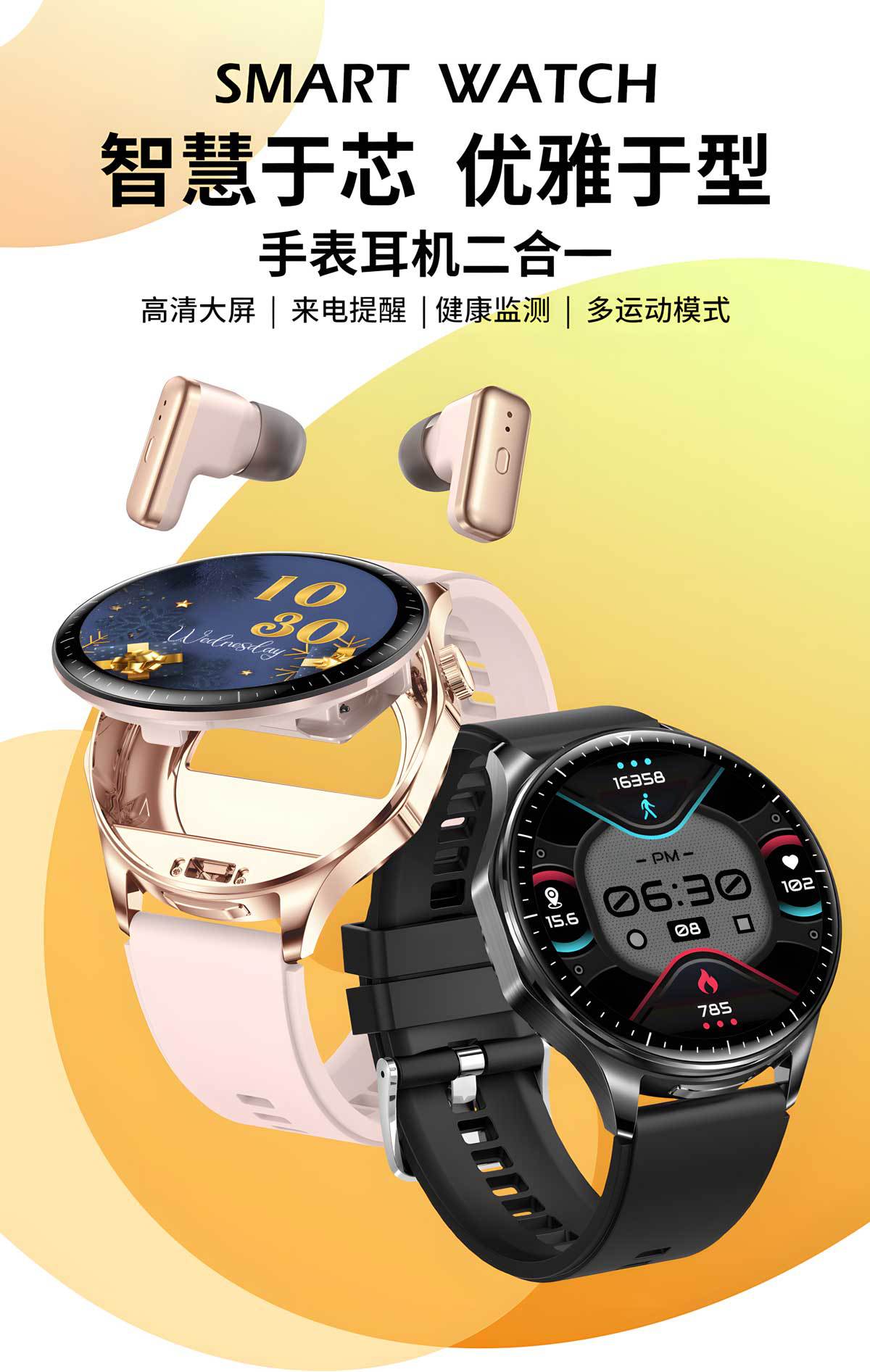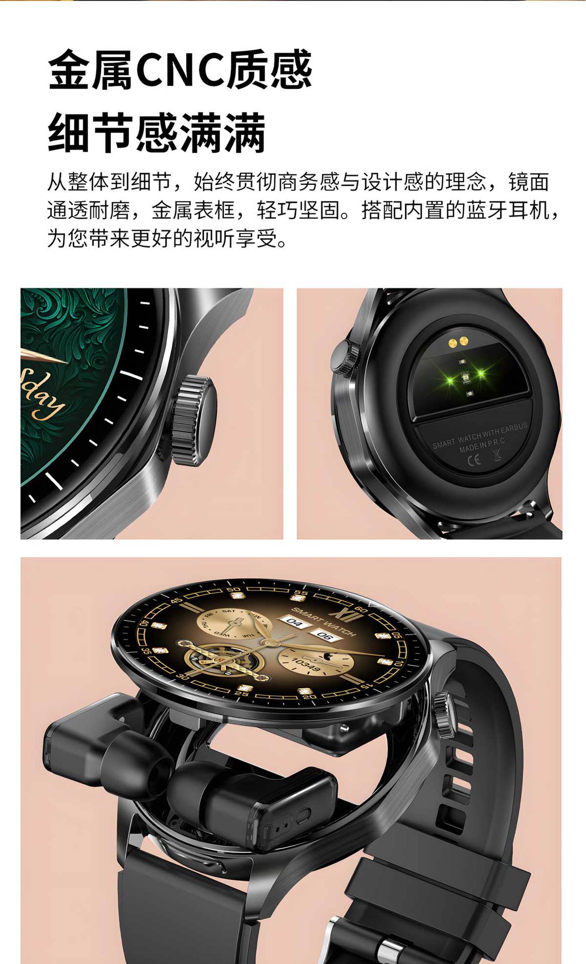 颜色 黑框黑胶带(全新定义智能耳机手表二合一),黑框黑皮带(全新定义智能耳机手表二合一),银框棕皮带(全新定义智能耳机手表二合一),黑框黑钢带(全新定义智能耳机手表二合一),银框银钢带(全新定义智能耳机手表二合一),金框金钢带(全新定义智能耳机手表二合一)