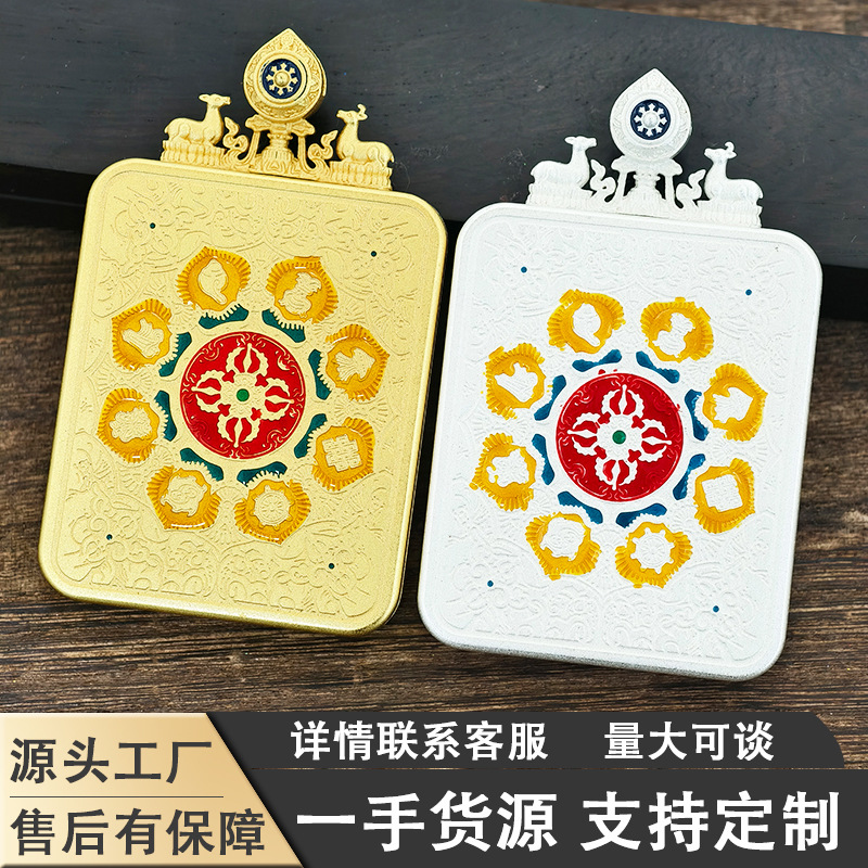 藏式吉祥八宝双鹿坛城钛钢绿度母唐卡盒滴胶嘎乌盒吊坠厂家批发
