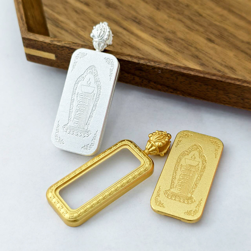 1×3扎基拉姆黄财矿砂纯手绘小金条钛钢唐卡嘎乌盒吊坠厂家批发