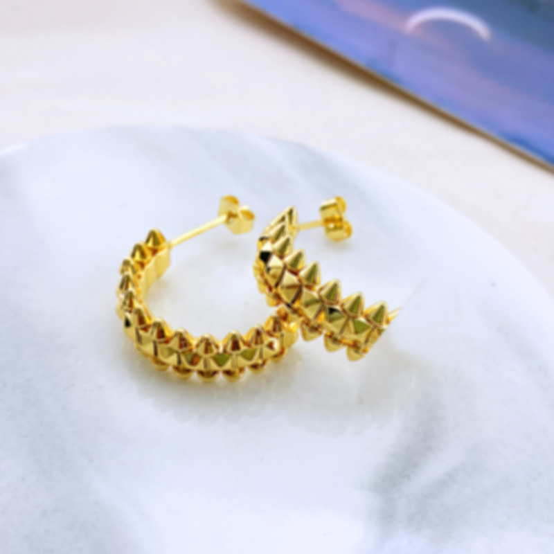 欧米の小香風ネットの赤いファッションの潮流はバラの金を組み合わせて色を落とさない新型のパイナップルの菱の格子縞のイヤリングを配合します。