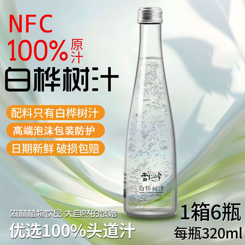 雪松嶺天然白樺樹汁原液原汁公式植物水100% NFC樺樹水320ml * 6本